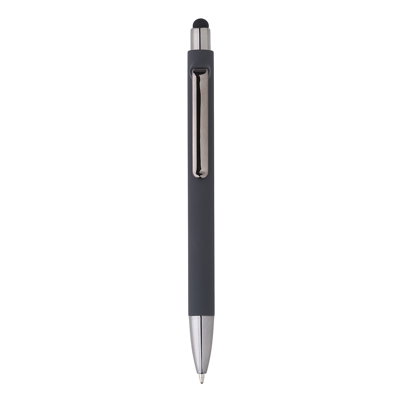Plastové kuličkové pero s modrou náplní. Tělo pera má matný povrch zatímco špička, klip a tlačítko jsou lesklé. Na konci tlačítka je gumový stylus pro kapacitní displeje. Pero má zvýšenou hmotnost pro příjemnější pocit z psaní. Rozměry: O 1,1 × 14,8 cm.