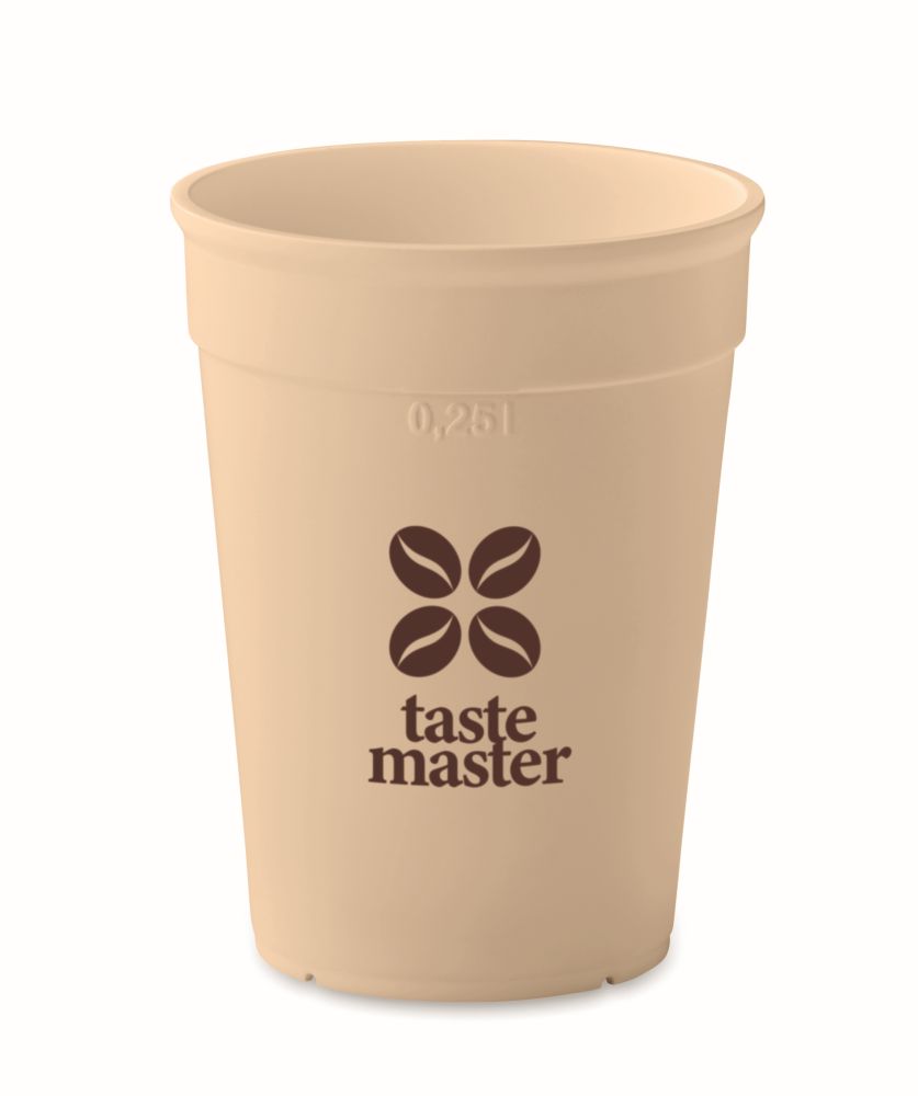 Opakovaně použitelný jednostěnný kelímek na kávu z recyklovaného PP. Objem: 300 ml Rozměry: O8.5x10cm