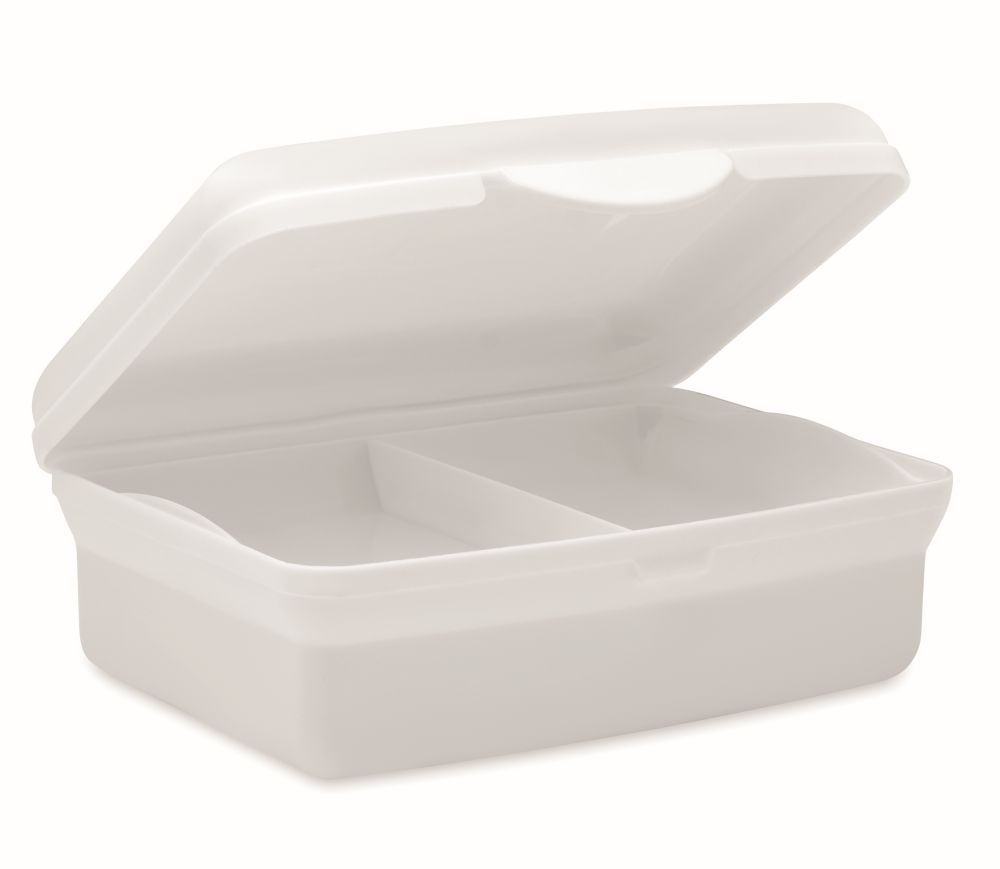 Krabička na oběd z recyklovaného PP se zacvakávacím uzávěrem. Objem: 800 ml. Rozměry: 17x12x6cm