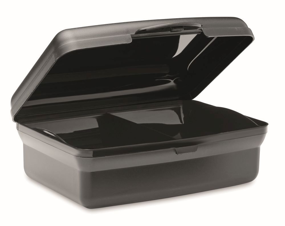 Krabička na oběd z recyklovaného PP se zacvakávacím uzávěrem. Objem: 800 ml. Rozměry: 17x12x6cm