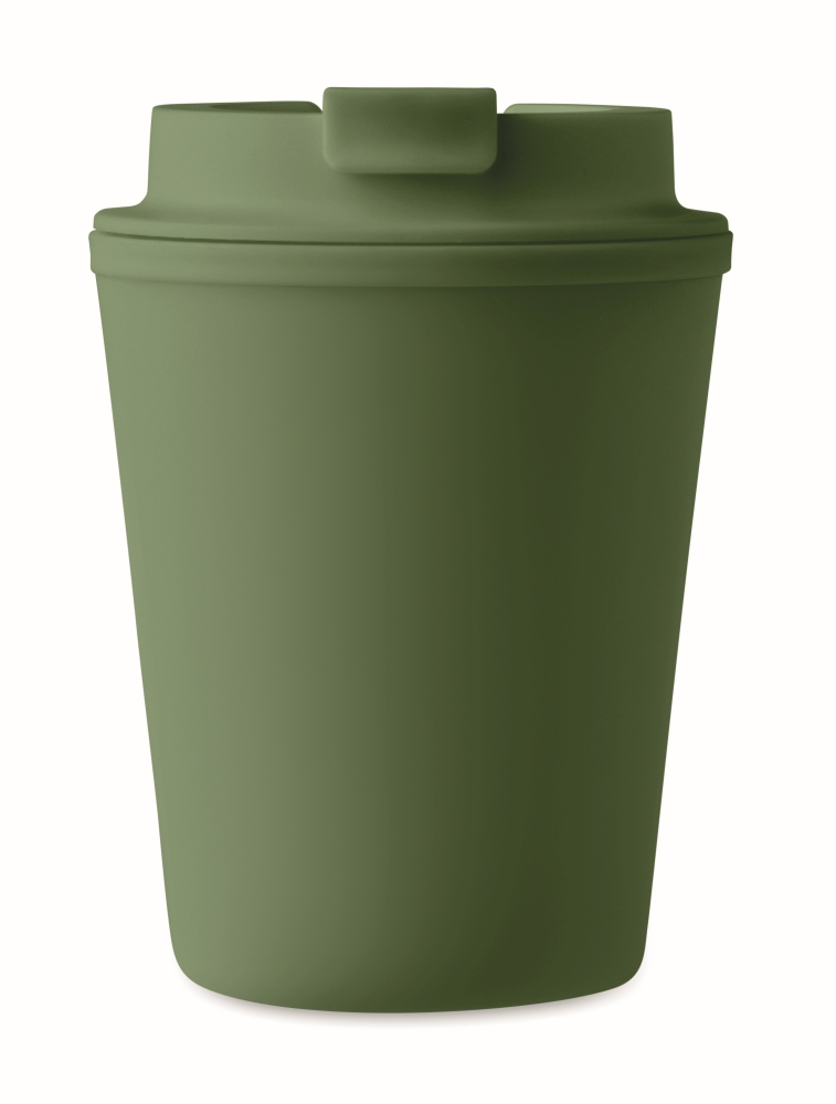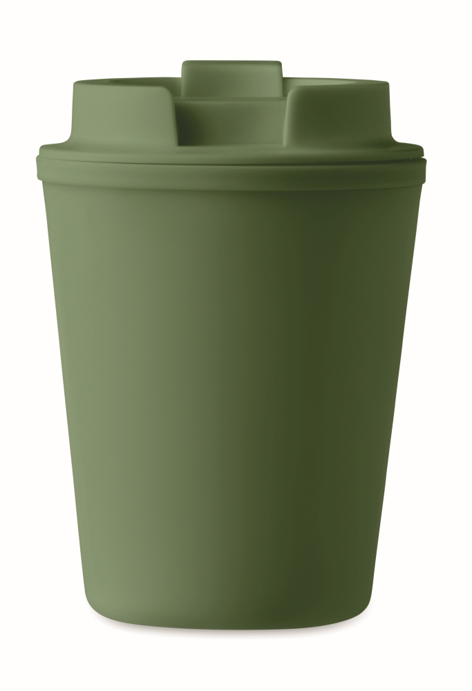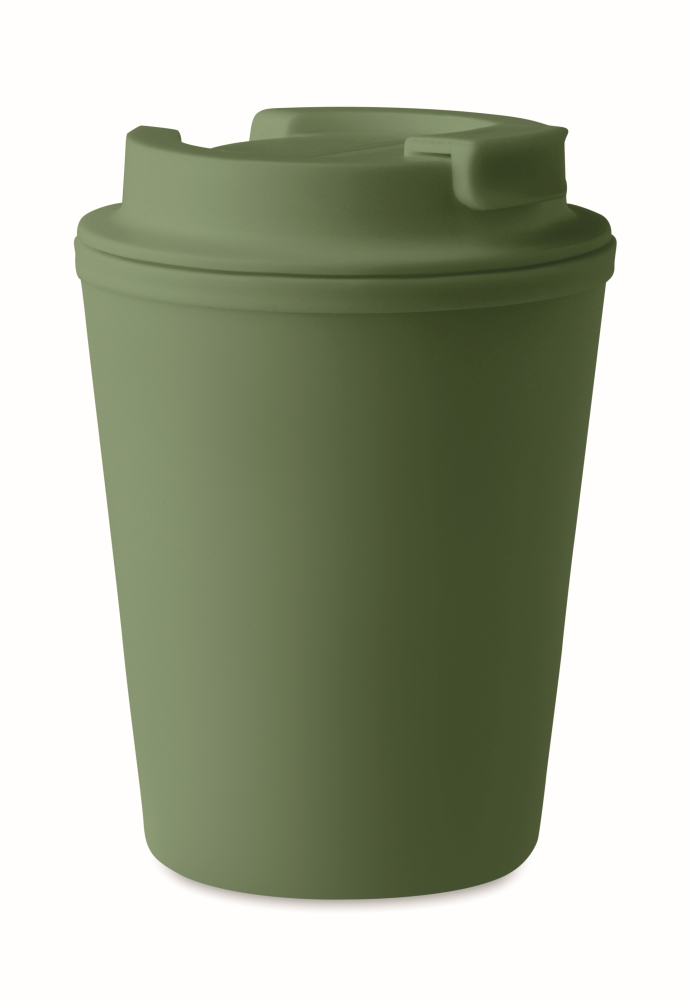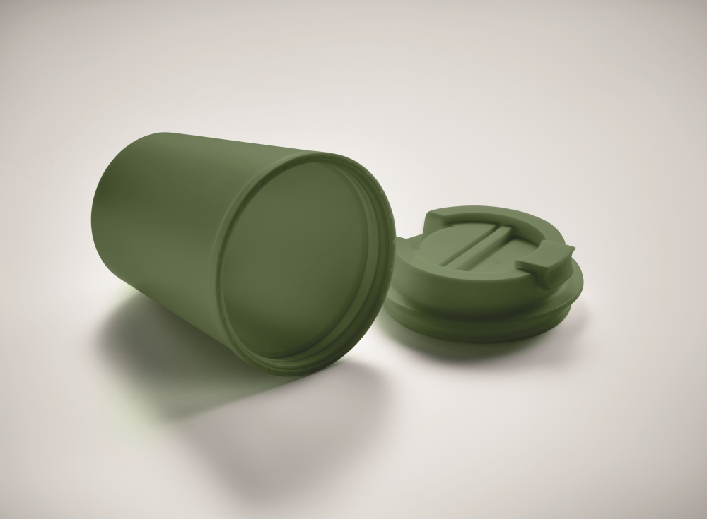 Dvoustěnný termohrnek z recyklovaného PP. Objem: 300 ml. Rozměry: O 9 x 12 cm. Materiál: recyklovaný PP