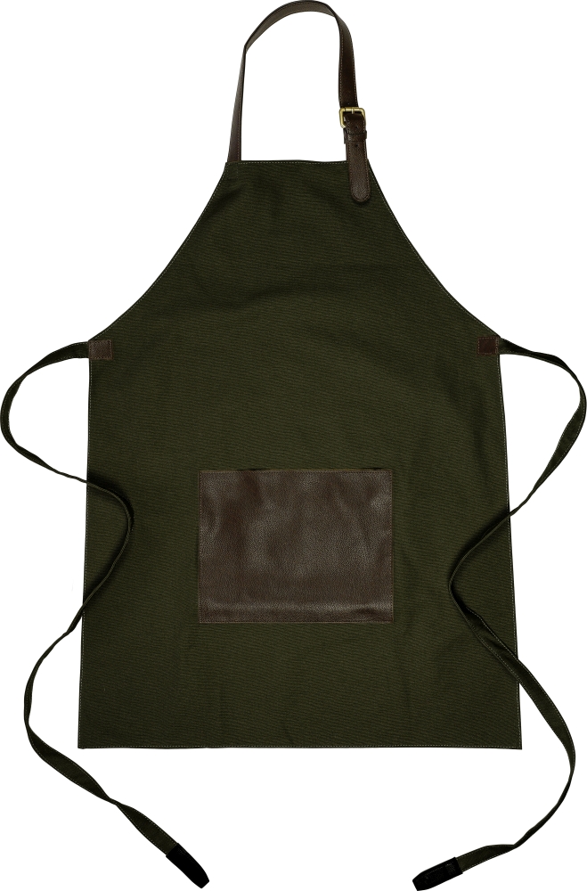 Plátěná zástěra (450 g/m2) s přední kapsou rPET PU a nastavitelným popruhem na krk. Hydrofobní.Rozměry: 62 x 83 cm