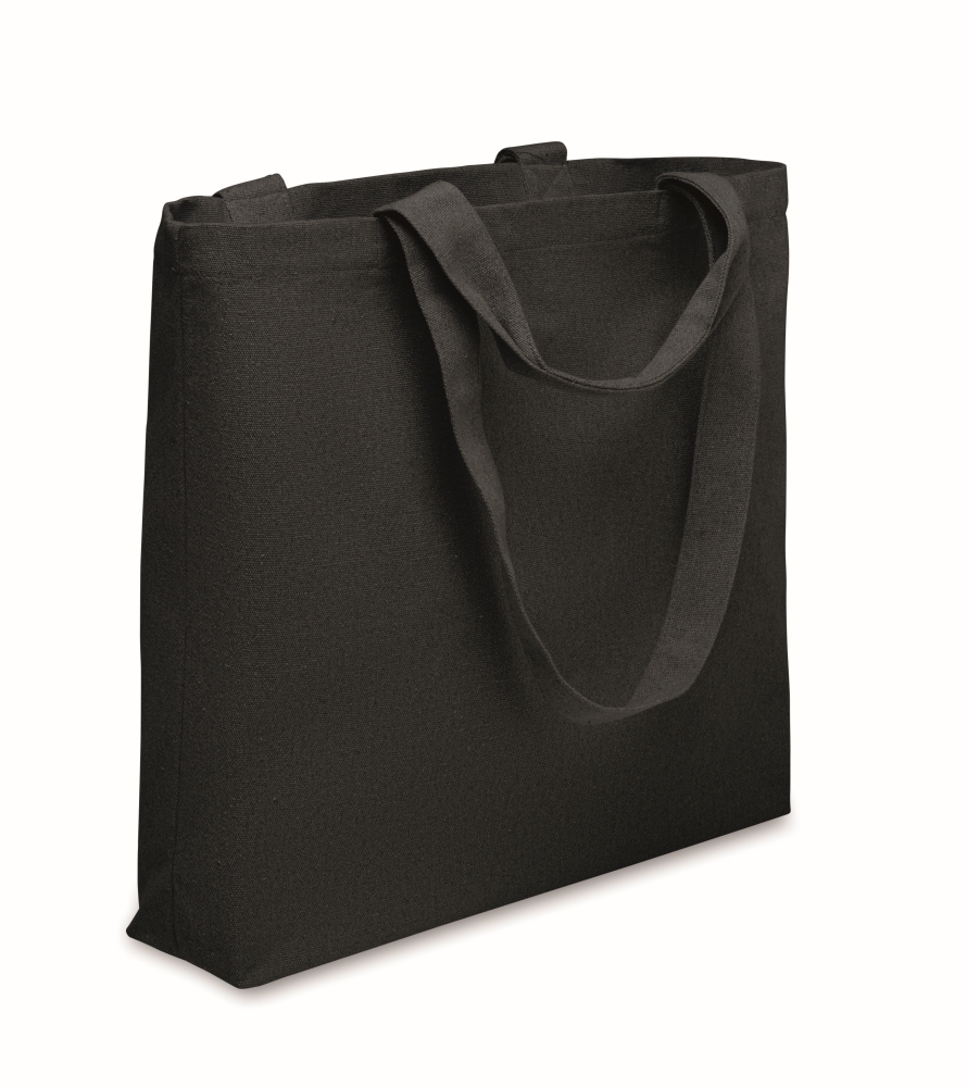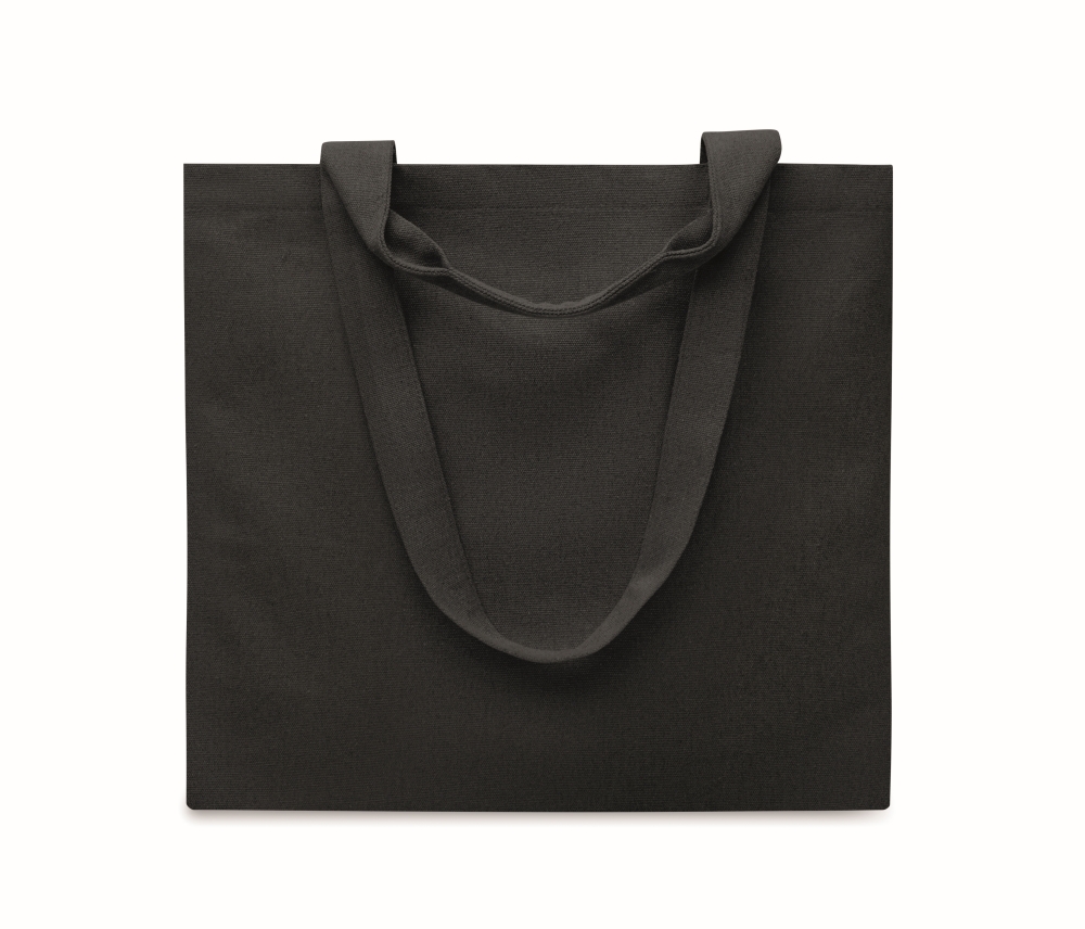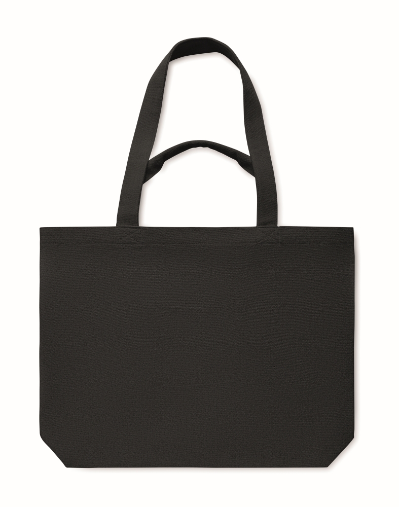 Nákupní nebo plážová taška z recyklovaných látek (60 % recyklovaná bavlna, 40 % recyklovaný polyester) s krátkými a dlouhými uchy. 320 gr/m2. Rozměry: 37 x 10 x 49 cm