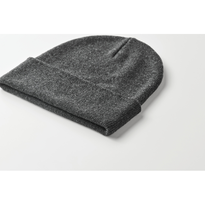 Unisex pletená čepice z měkkého elastického polyesteru (64 %) a akrylu (36 %), s ohrnutým lemem Elastický střih, univerzální velikost.Rozměry: 20,5 x 21,5cm