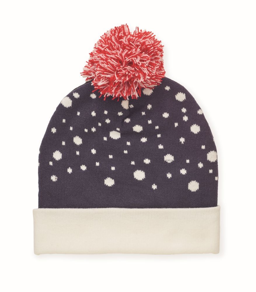 Vánoční pletená čepice s lemem a bambulí. Vyrobeno z měkkého elastického akrylu. Rozměry: 22x21,5cm