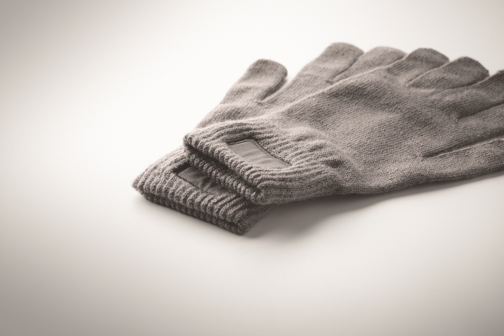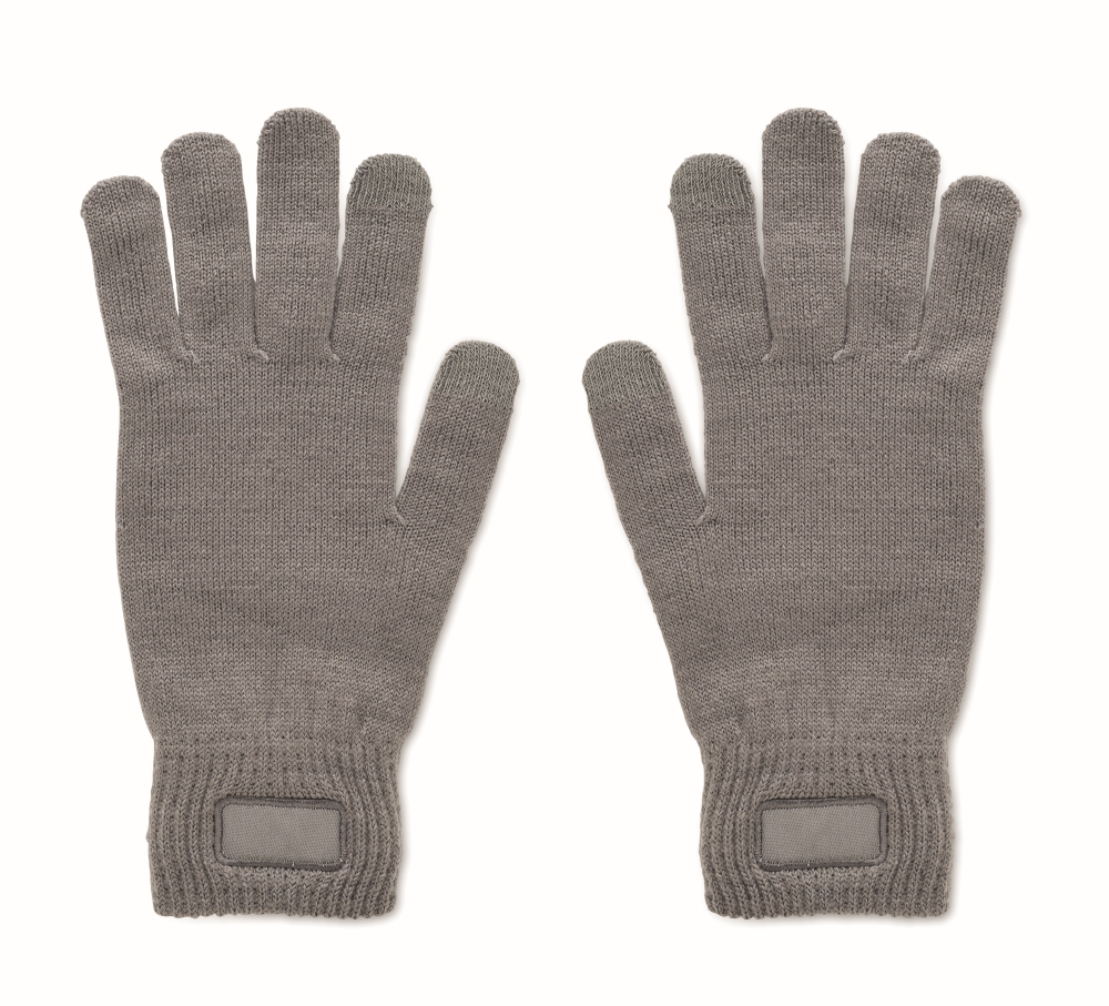 Pletené rukavice z měkkého strečového polyesteru RPET s nášivkou. Rozměry: 24 × 12 cm.