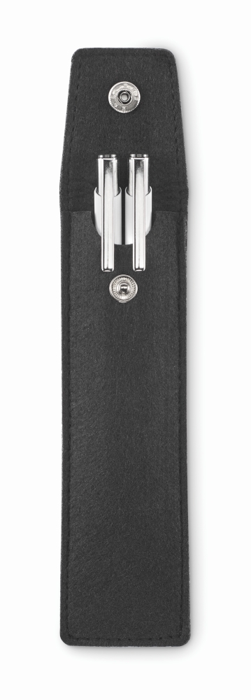Plstěné pouzdro RPET (na 2 pera) se zapínáním na knoflík. Rozměry: 16.5 x 5 cm