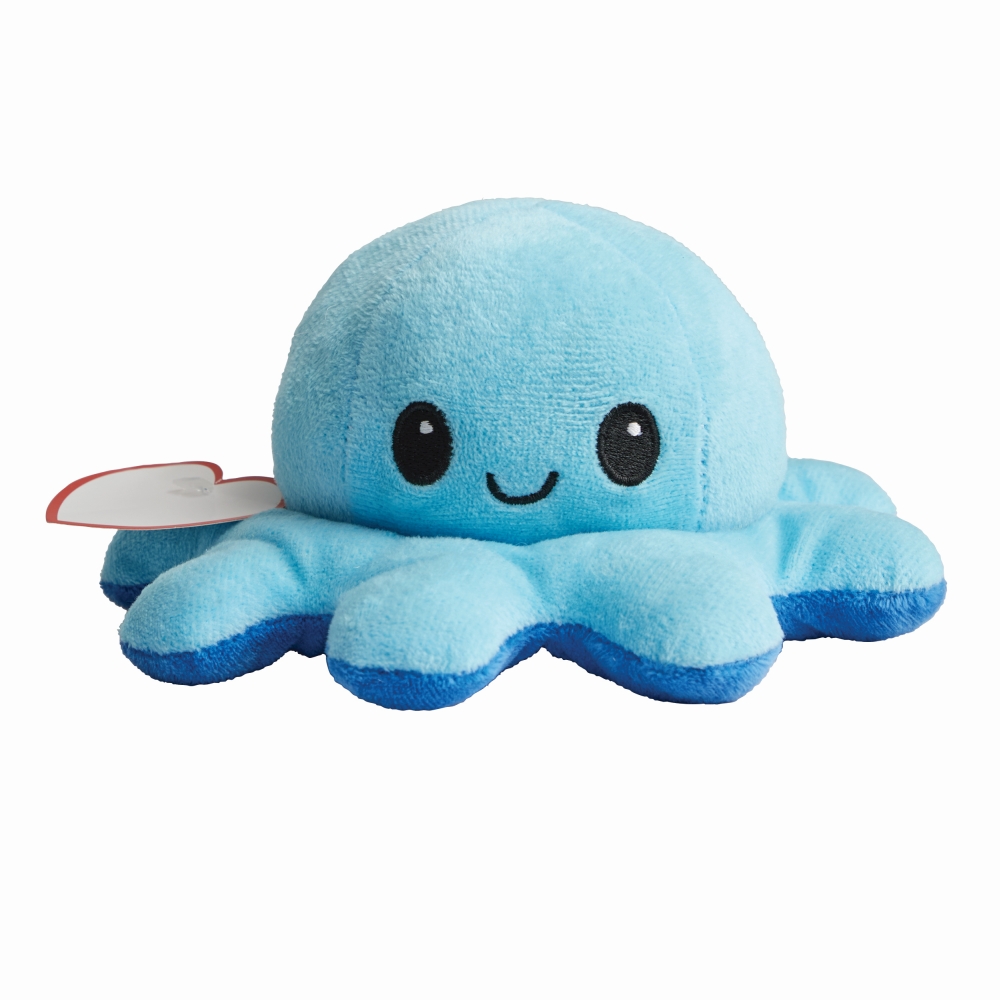 Plyšová chobotnice, oboustranný design, usměvavý nebo smutný obličej, s měkkým kožíškem, se srdcem k potisku. Rozměry: o 19 x 13 cm