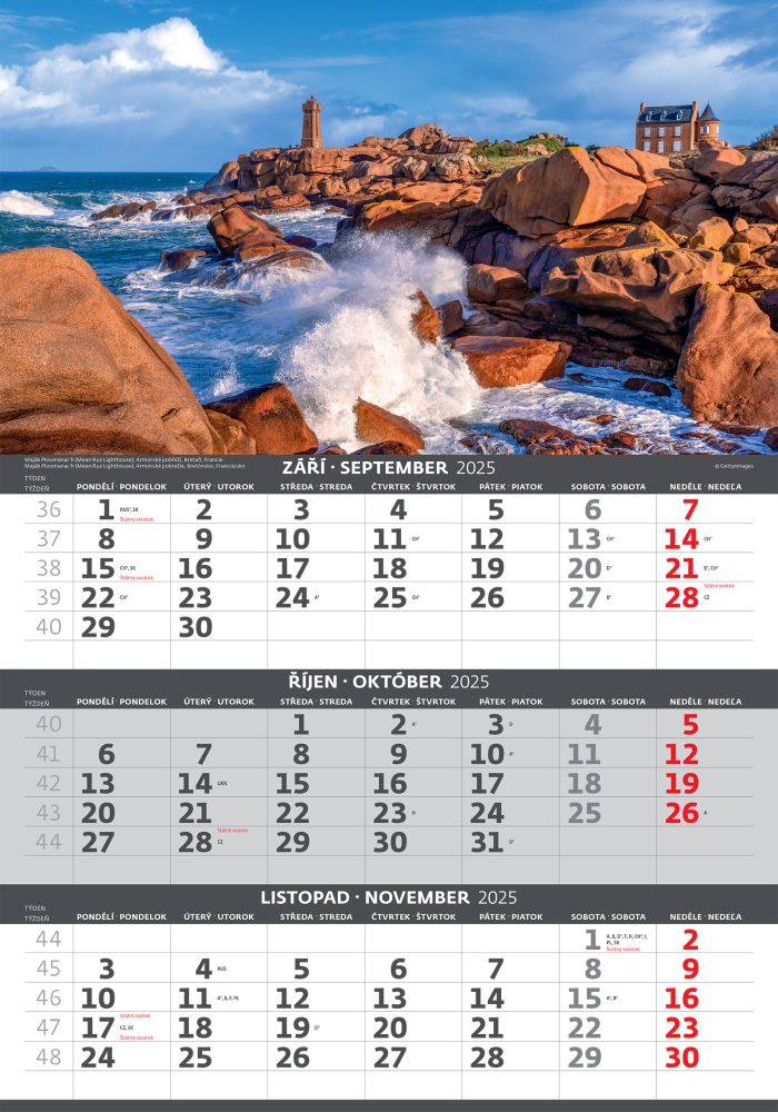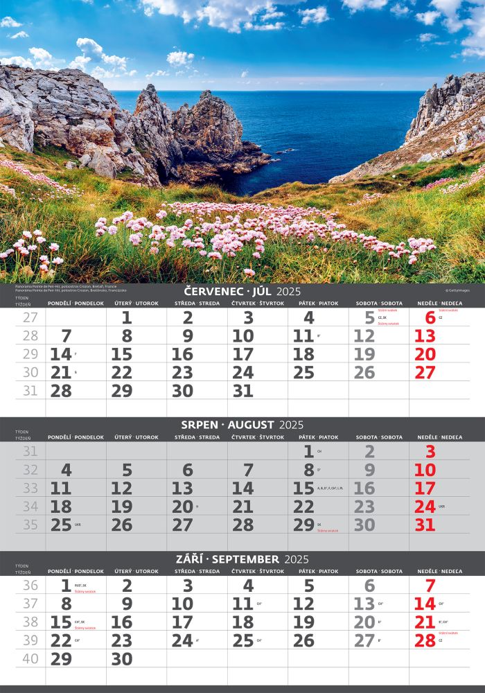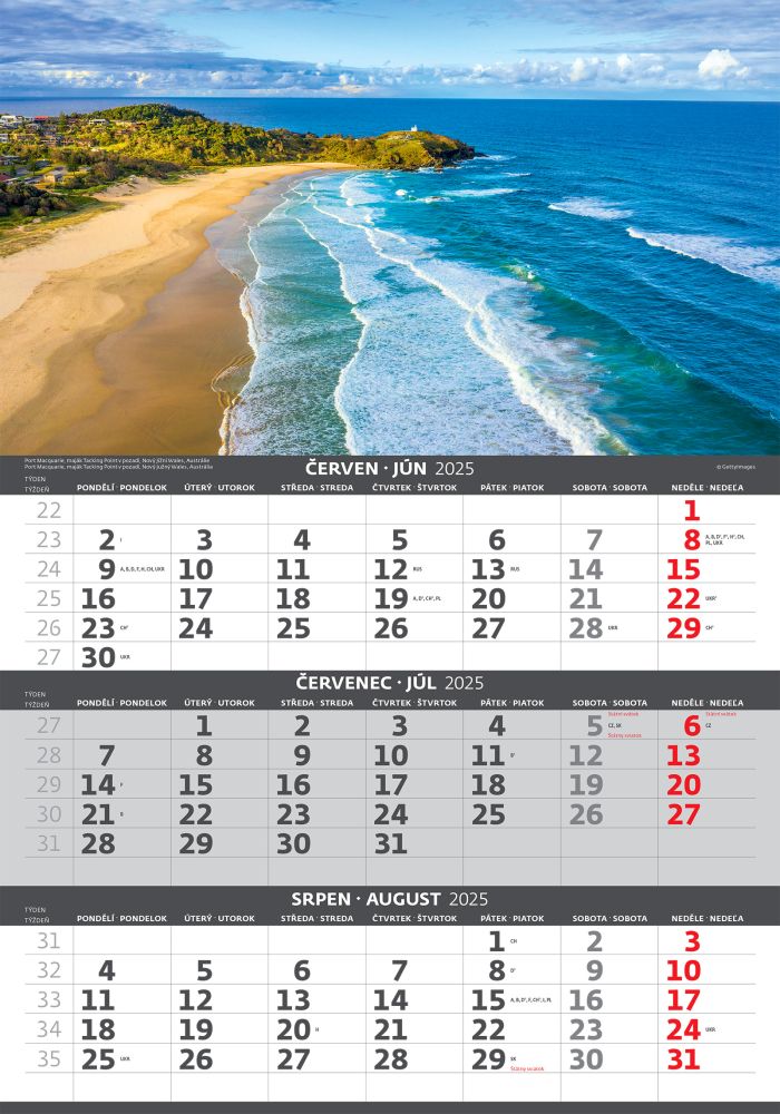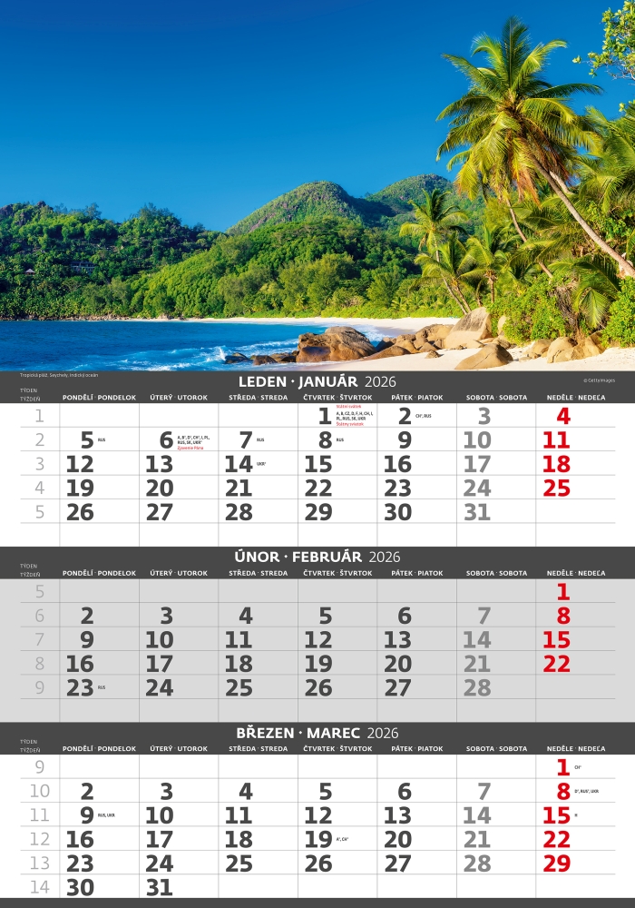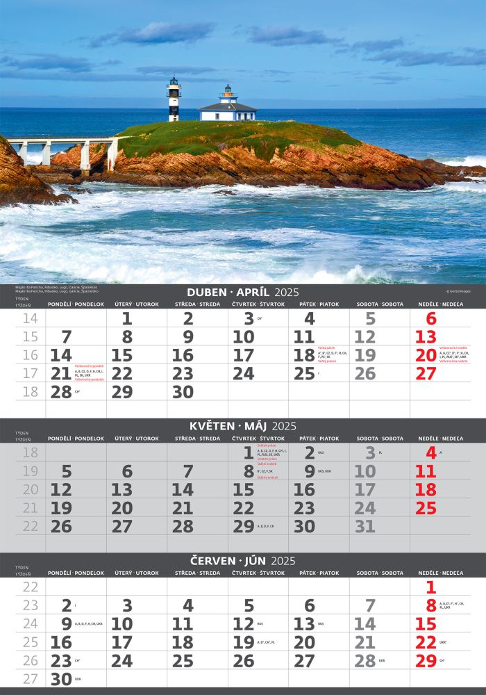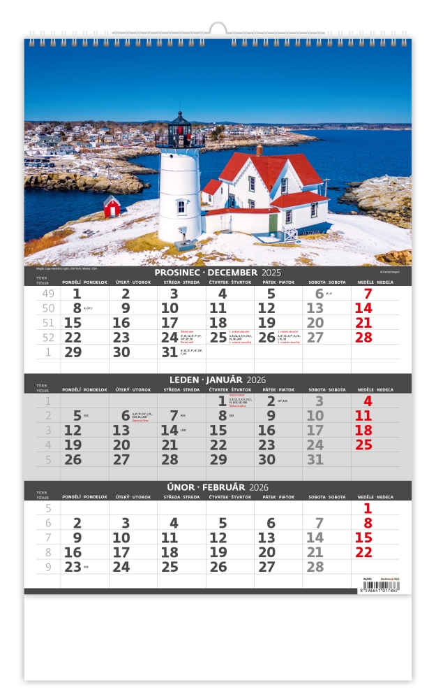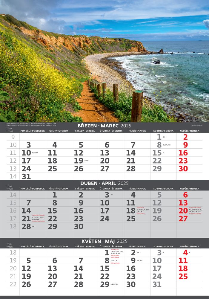 Pobřeží 2026 tříměsíční nástěnný kalendář