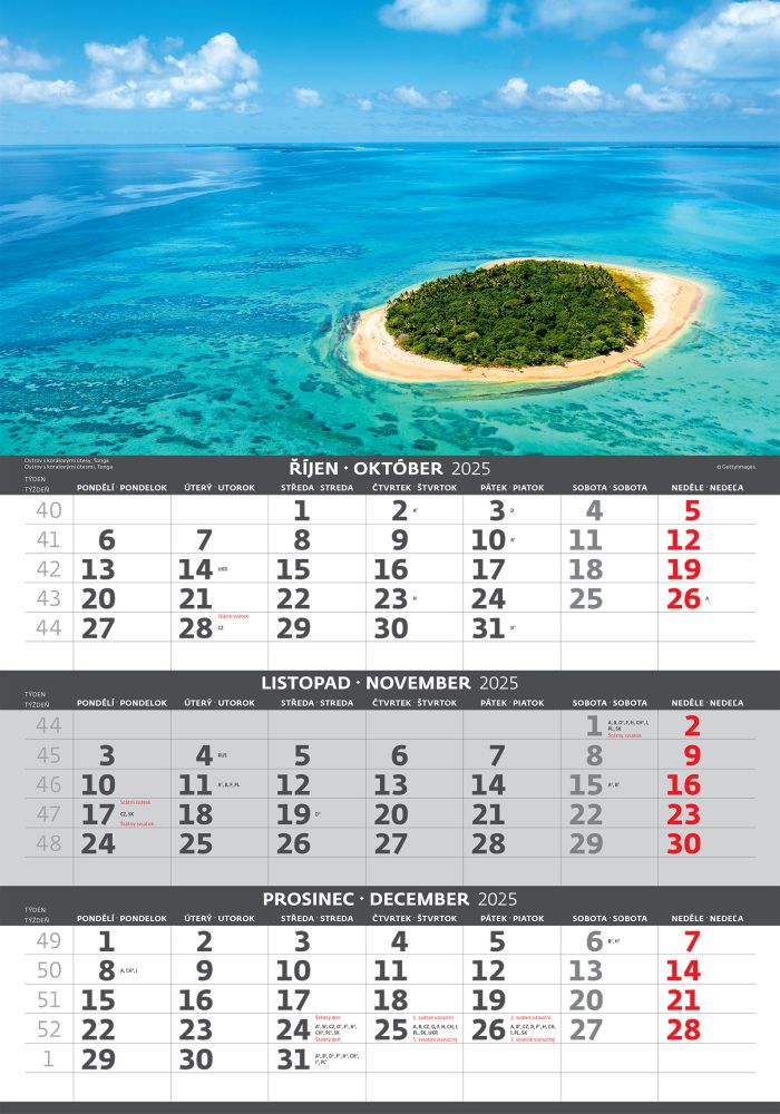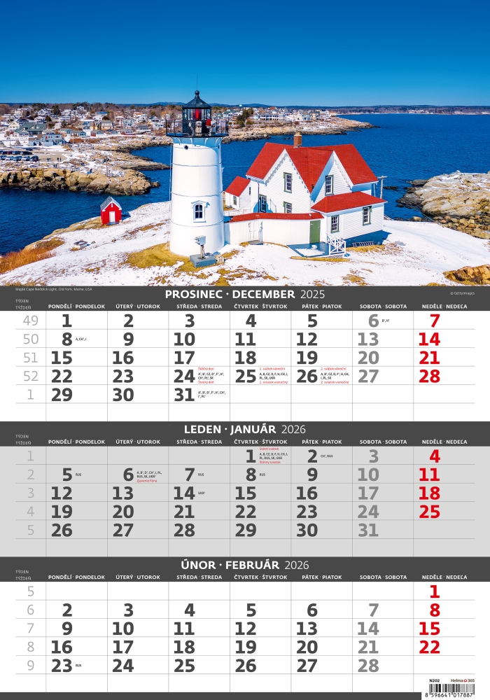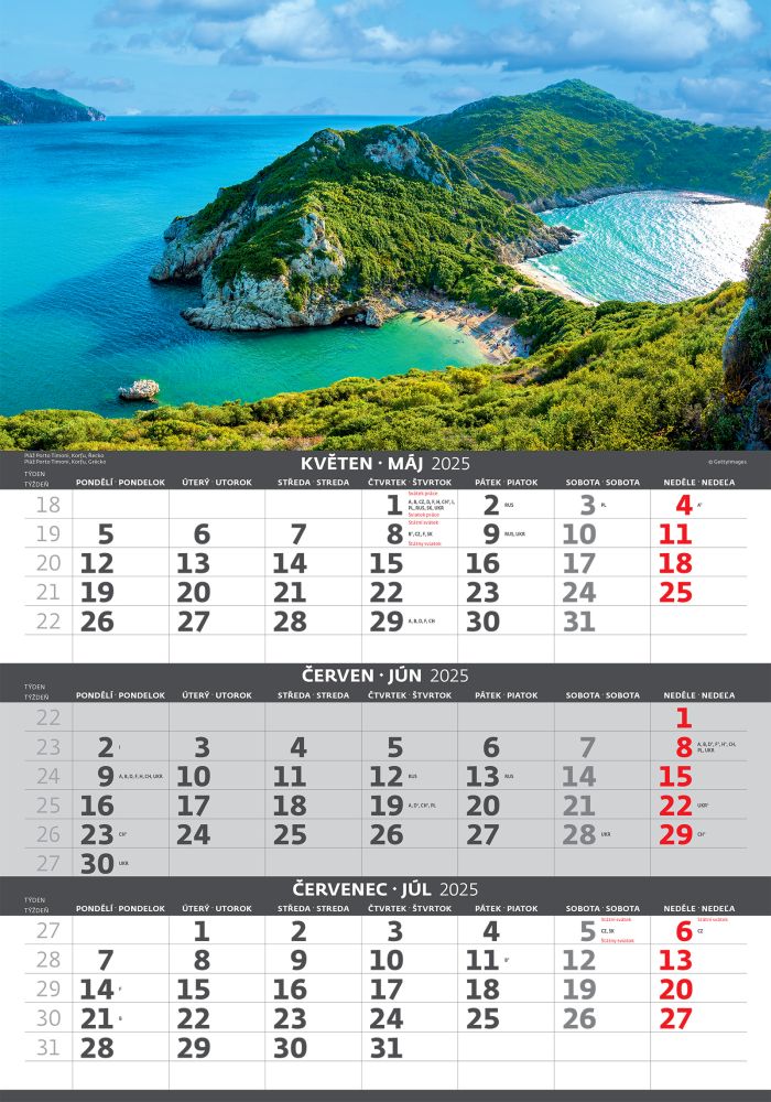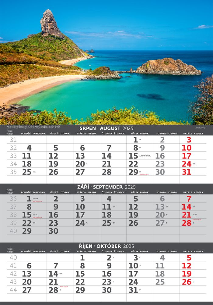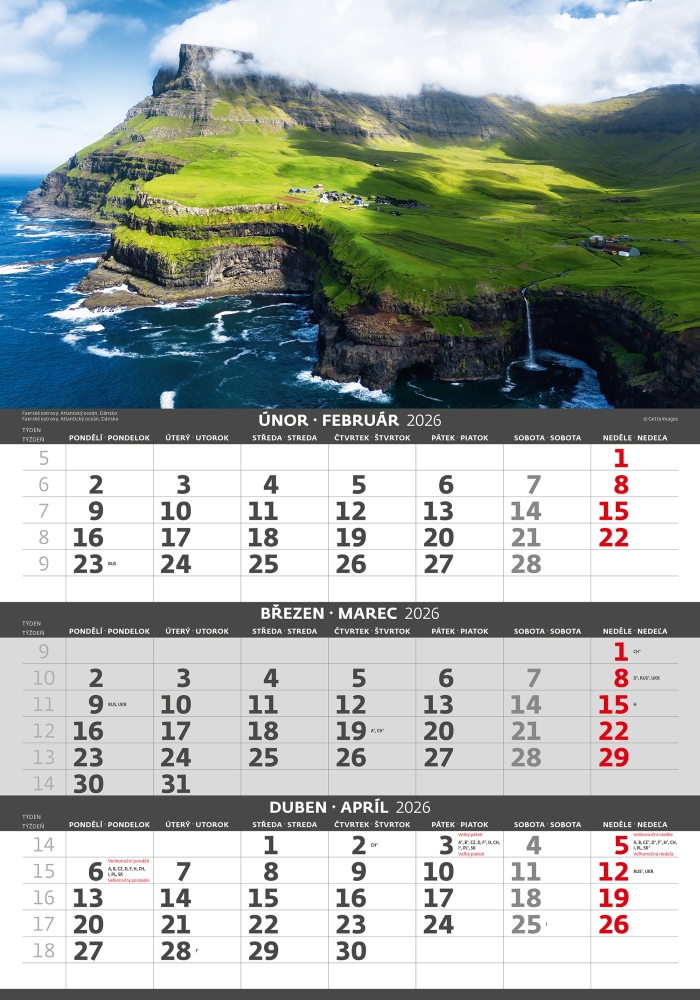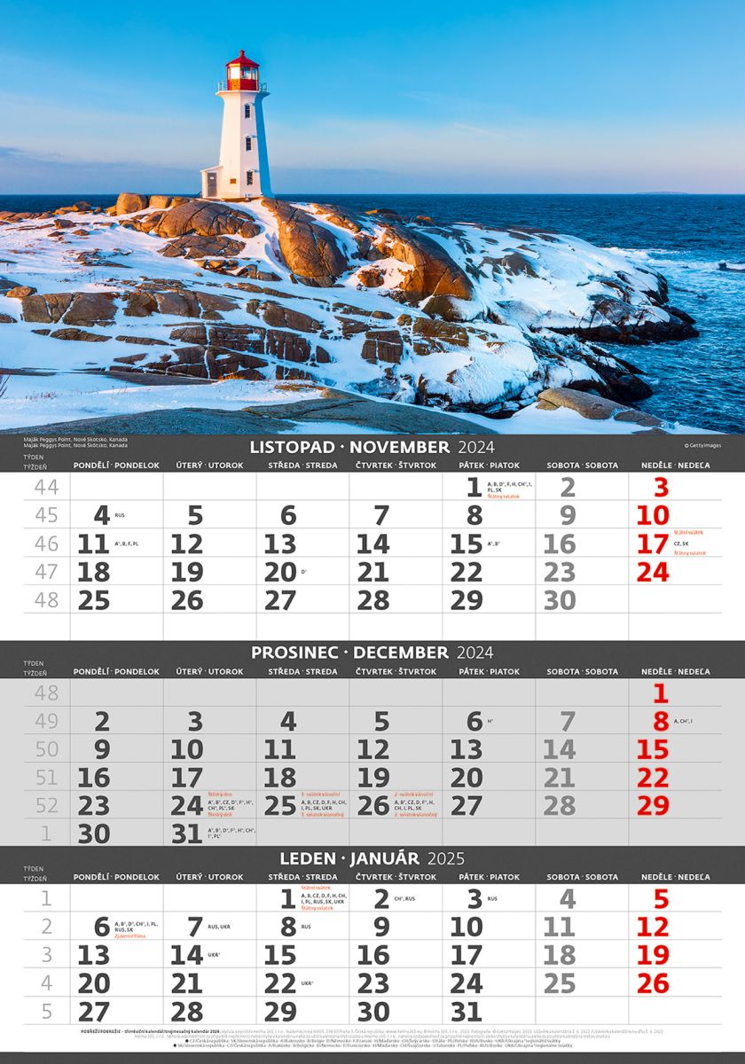 Pobřeží 2026 tříměsíční nástěnný kalendář