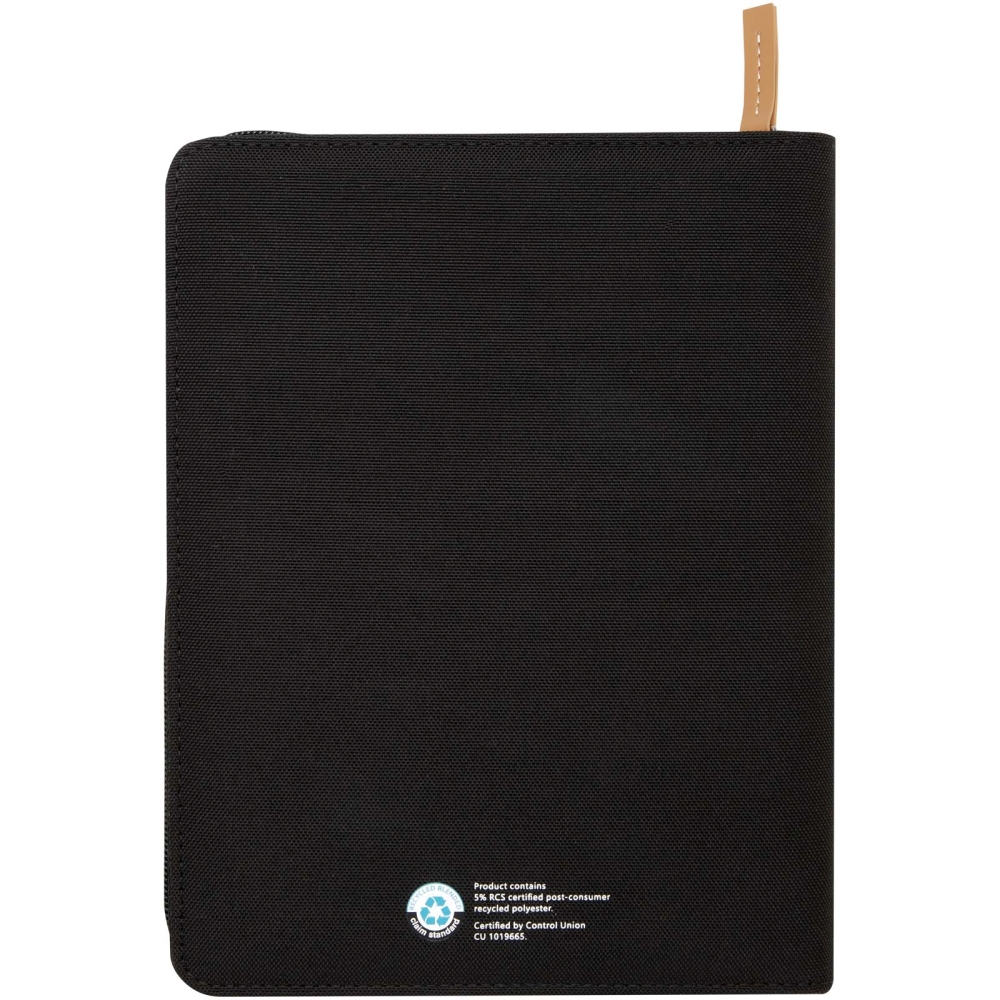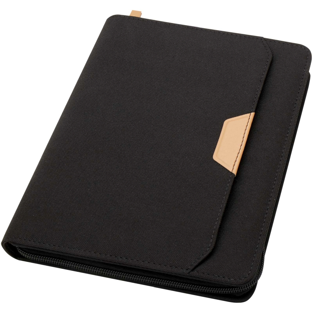 Portfolio A5 se zaoblenými rohy je praktickou pomůckou do každé kanceláře a je vyrobené z recyklovaného plastu. Disponuje 64 linkovanými listy papíru v krémové barvě o gramáži 80 g/m2, zapínáním na zip, poutkem na pero a rozšiřitelnou kapsou. Rozměry: 22,5 x 18 cm