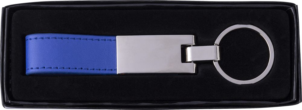Postříbřená ocelová klíčenka s poutkem, modrá