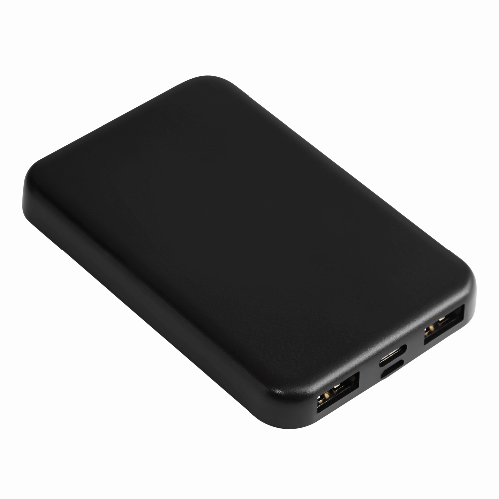 Powerbanka vhodná pro chytré telefony a zařízení napájená přes USB, dva porty USB Type-A (výstup), jeden port USB Type-C (výstup a vstup) a jeden port Micro-USB (vstup) , kapacita: 5.000 mAh, vč. USB kabel se zástrčkou USB Type-C (délka: cca 30 cm), LED indikátor úrovně nabití, vypínač, výkonná lithium-iontová baterie a dvouvrstvý ochranný obvod, vstupní napájení: 5V/2A, výstupní výkon: 5V /2A, kontrolka provozu. Rozměry: 9,8 x 6,4 x 1,6 cm
