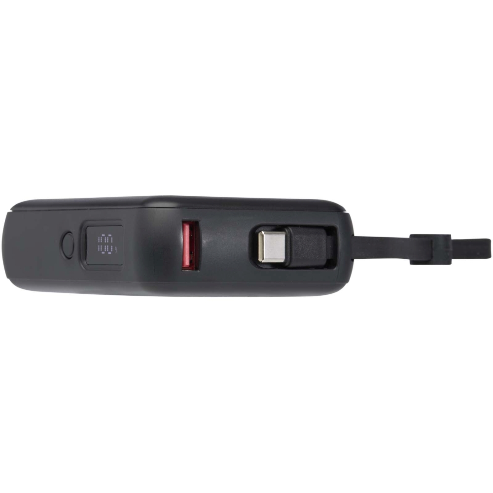 Powerbanka 10 000 mAh 35W pro tablet s integrovaným kabelem typu C – vyrobeno z recyklovaného plastu, černá