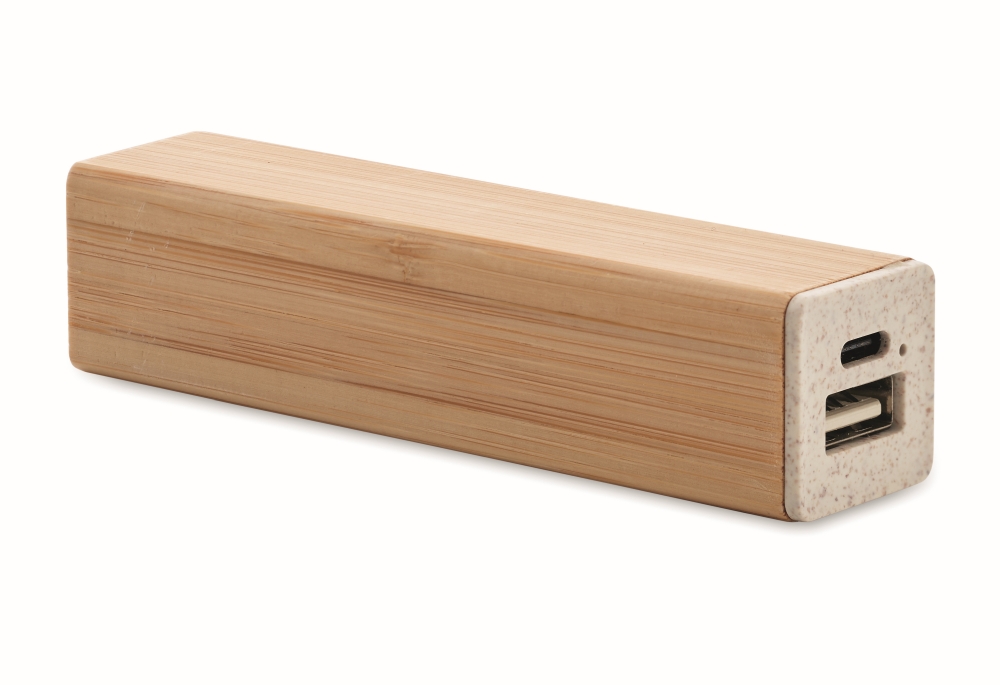 Powerbanka 2600 mAh v bambusovém pouzdře. Kapacita pro smartphone, výstupní proud DC5V/1A. Včetně nabíjecího kabelu USB typu C s adaptérem typu A. Vstup/výstup: USB Type-C. Rozměry: 10,2 x 2,5 x 2,5 cm. Materiál: bambus