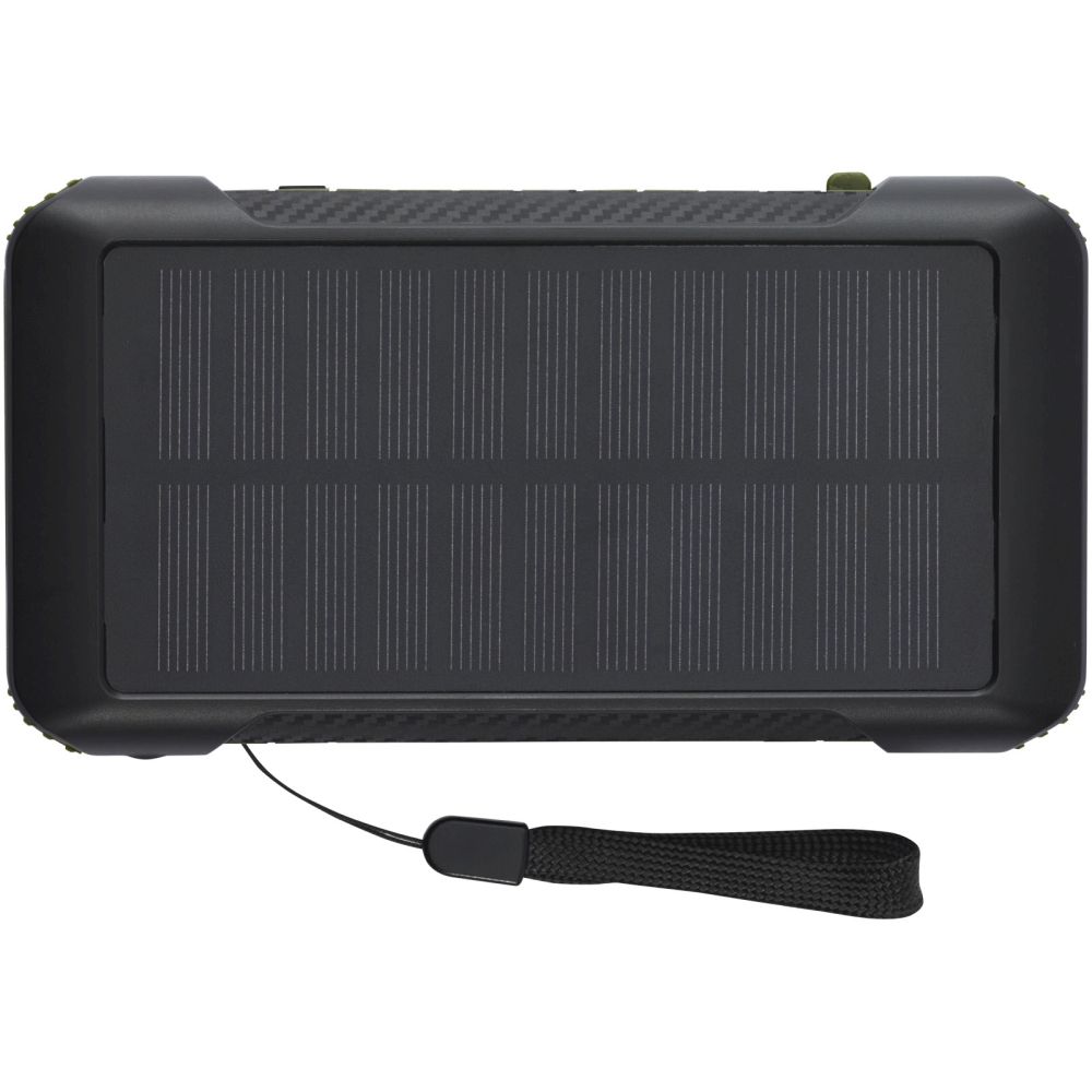 Solární powerbanka z recyklovaného RCS plastu o kapacitě 10 000 mAh je ideálním společníkem pro nabíjení při outdoorových aktivitách. Je vybavena ručním klikovým dynamem pro ruční generování energie pro případ, že vám dojde baterie a nesvítí slunce. Powerbanku lze nabíjet také přes USB-C nebo micro USB port na zařízení. Díky vestavěným nabíjecím kabelům s konektory USB-C, iOS, USB-A a micro USB vám tato powerbanka umožňuje nabíjet většinu chytrých telefonů, fotoaparátů, powerbank, sluchátek atd. Powerbanka má maximální výstupní výkon 2,4 A na port. Vstupní výkon je omezen na 2 A. Dodáváno s uživatelskou příručkou a 30cm nabíjecím kabelem USB-A na USB-C a zabaleno v krabičce ze 100% recyklovaného kraftového papíru. Rozměry: 15,9 x 3,1 x 8,5 cm.