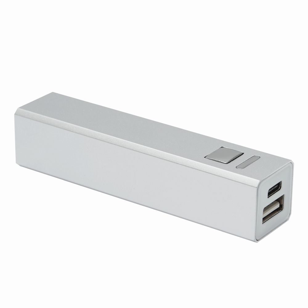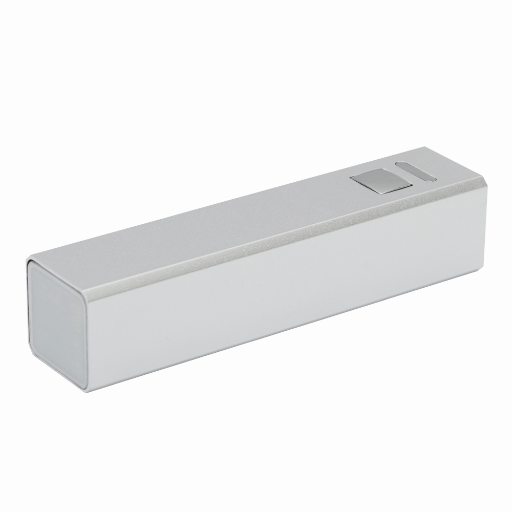 Powerbanka vhodná pro chytré telefony a zařízení napájená přes USB, červená LED kontrolka nabíjení, modrá LED kontrolka funkce, vypínač, příkon: 5V/1000 mA, výstupní výkon: 5V/1A, kapacita: 2.600 mAh, výkonná lithiová baterie, dvouvrstvý ochranný obvod, vč. USB kabel se zástrčkou USB Type-C (délka: cca 25 cm), kryt z recyklovaného hliníku. Rozměry: 9,4 x 2,2 x 2,2 cm
