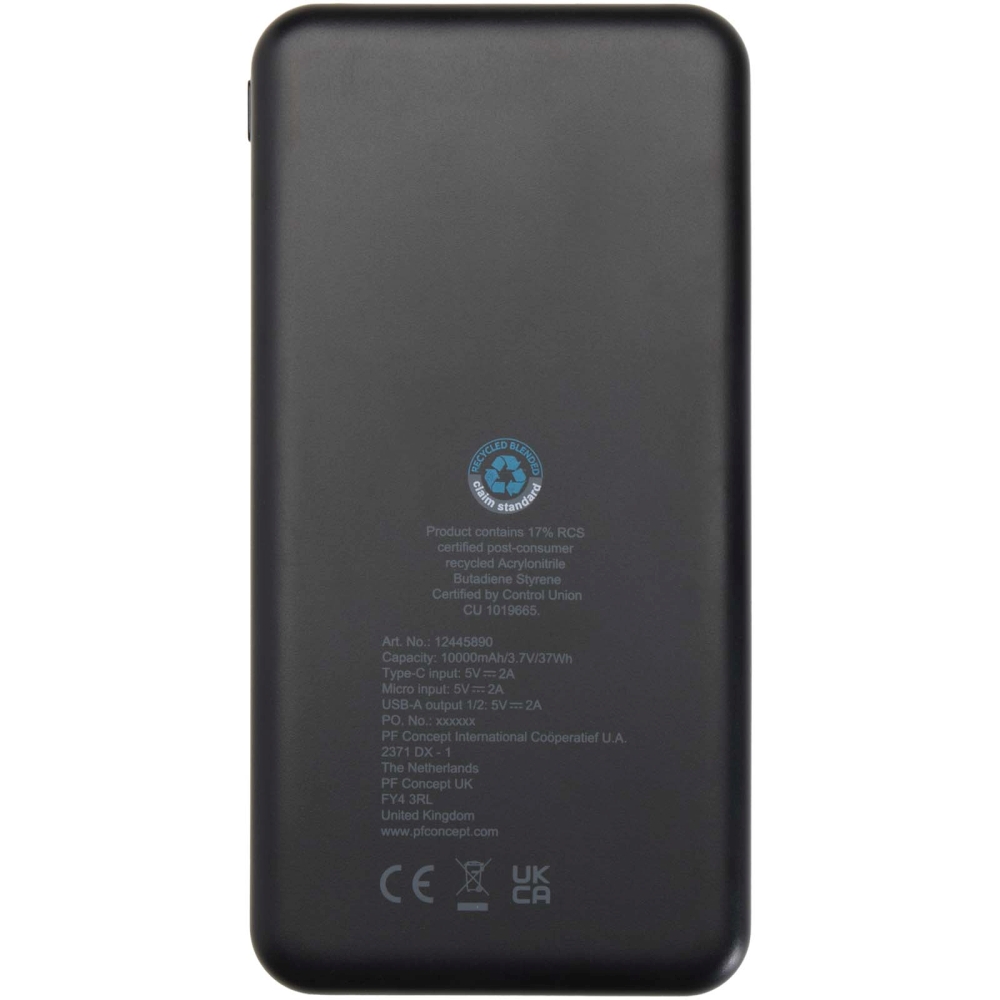 Powerbanka z recyklovaného plastu s kapacitou 10 000 mAh a výkonem 10 W, černá