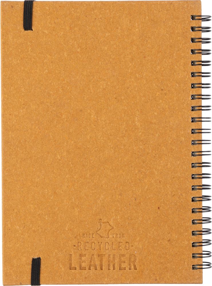 Poznámkový blok z recyklované kůže A5 s 80 stranami (70 g/m2). Ražba z recyklované kůže na zadní straně obálky. Materiál: recyklovaná kůže Rozměry: 21,2 x 14,5 x 1,2 cm