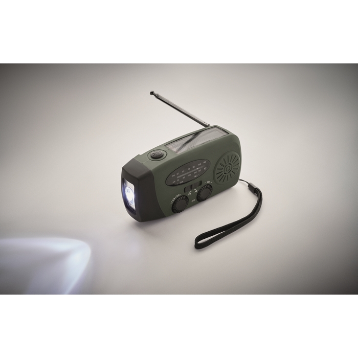 Přenosné rádio s LED svítilnou, tmavě zelená