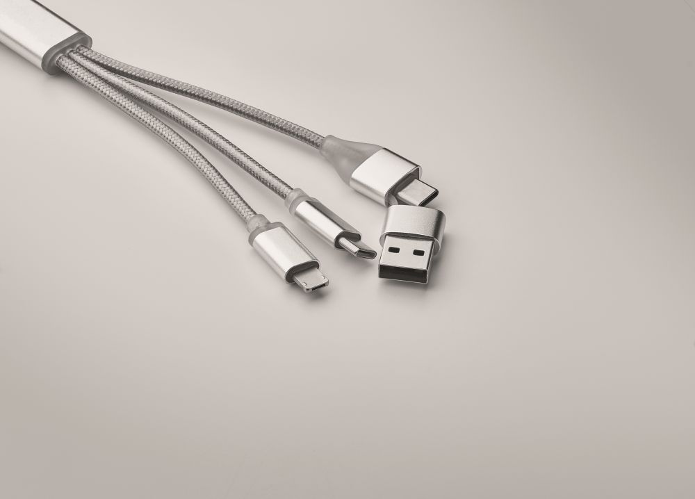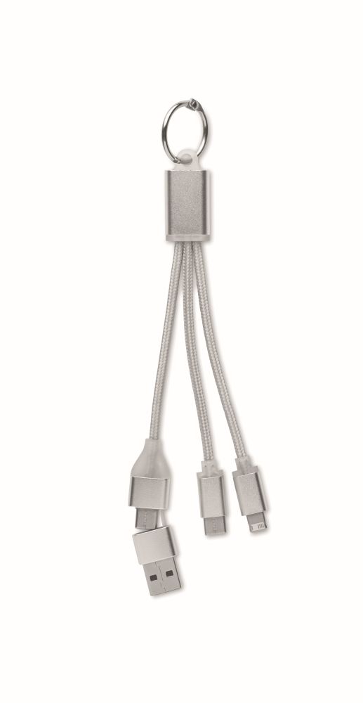Přívěšek na klíče s nabíjecím kabelem, stříbrný