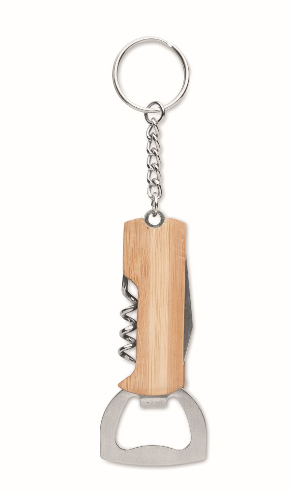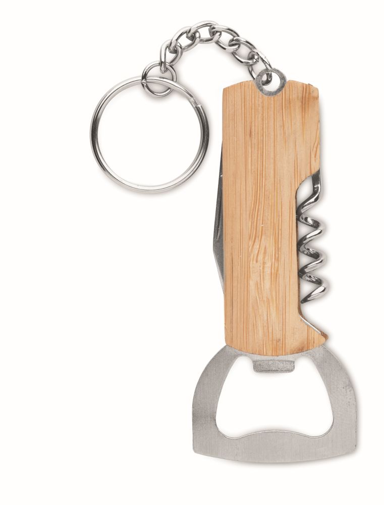 Kapesní nářadí 3v1 s bambusovým krytem a kroužkem na klíče. Otvírák na lahve, vývrtka a nůž. Rozměry: 13,3x3,6cm
