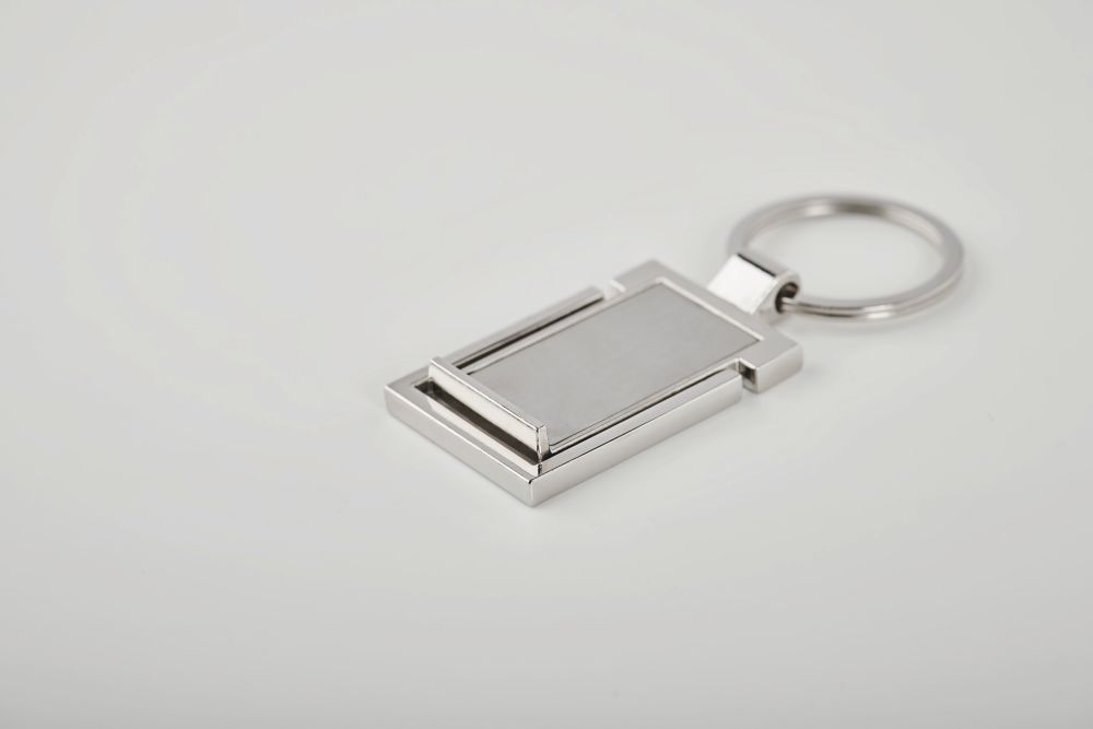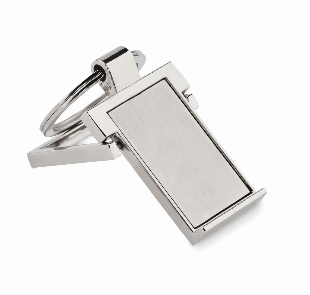 Kovový přívěsek na klíče a stojánek na telefon. Rozměry: 5,5x2,95x0,8cm