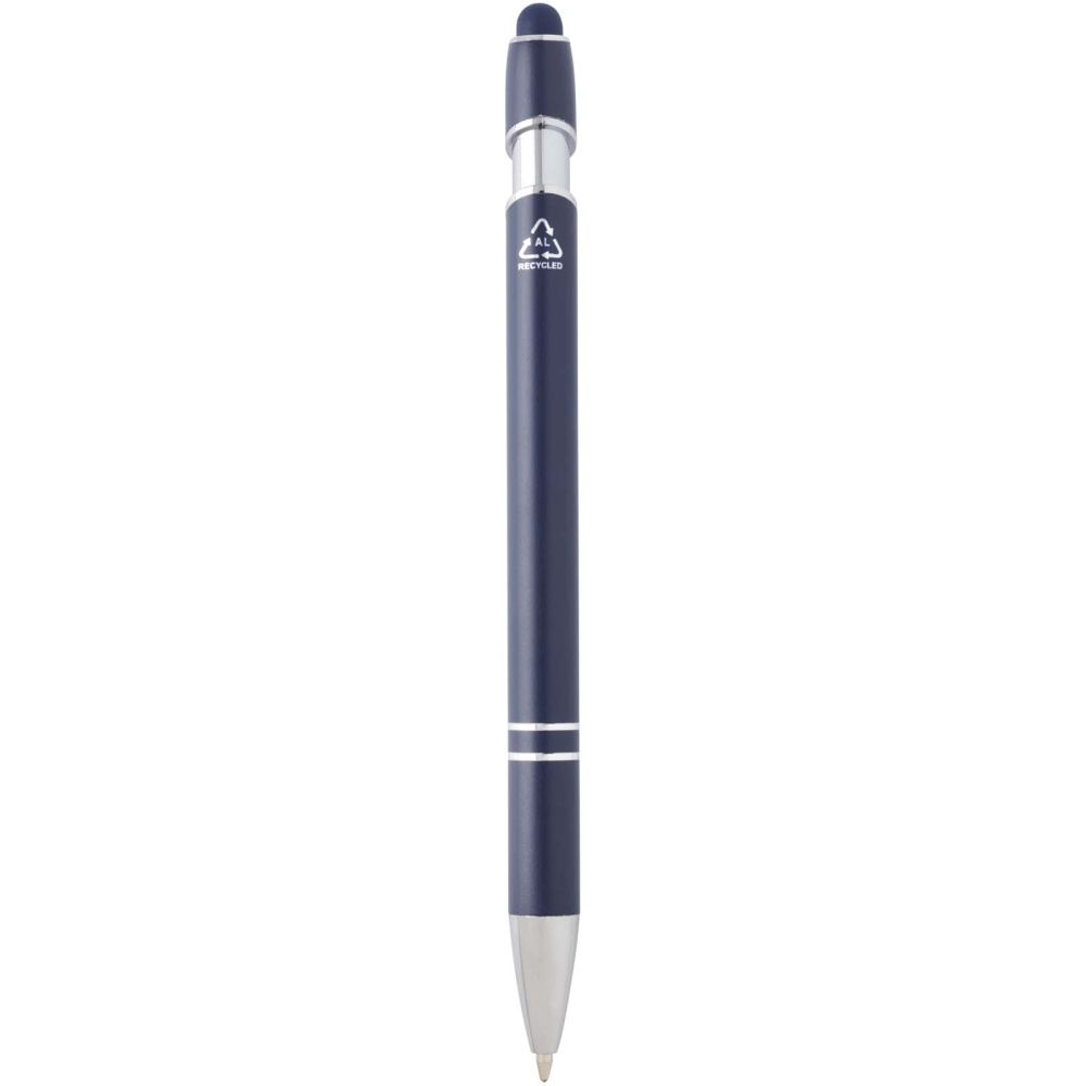 Propiska se stříbrnou povrchovou úpravou má tělo vyrobené z recyklovaného hliníku a dotykový stylus vyrobený ze silikonu. Snižuje také množství odpadu na skládkách a pomáhá šetřit přírodní zdroje s cílem snížit emise skleníkových plynů. Barva inkoustu: Černá. Délka psaní: 800 metrů. Rozměr hrotu: 1,0 mm. Rozměry: 14,4 x O 1 cm