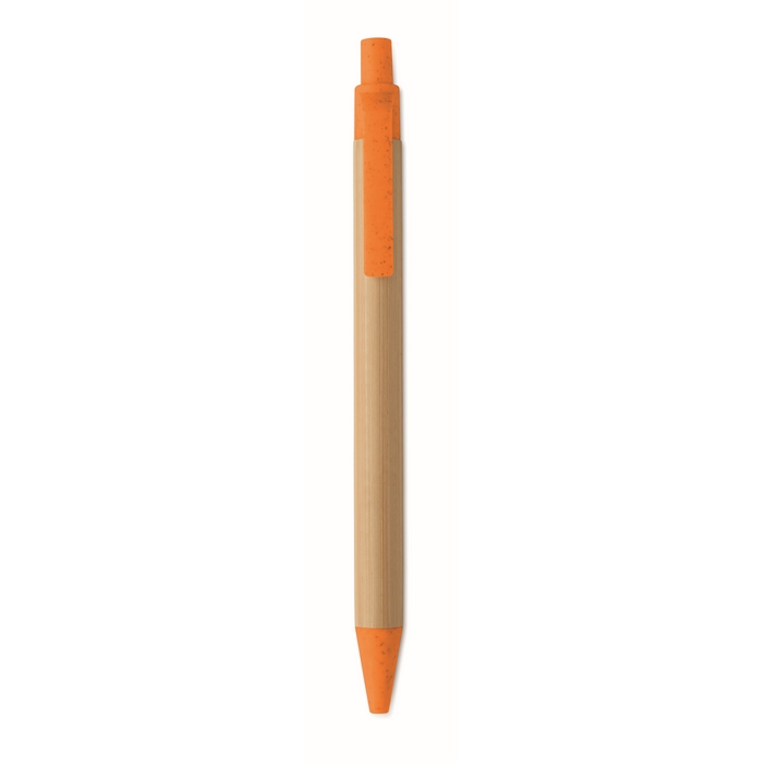 Tlačítková propiska s bambusovým tělem a doplňky z pšeničné slámy (50%) a plastu ABS (50%). Modrý inkoust.Rozměry: 14 x ?1cm