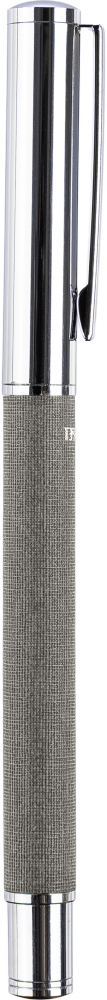 Mosazná a rPET propiska s kovovým klipem a rukojetí. Má posuvný mechanismus a logo rPET na těle. Jednotlivě baleno v hnědé kartonové krabici. Modrý inkoust. Rozměry: 14 x 1,3 cm