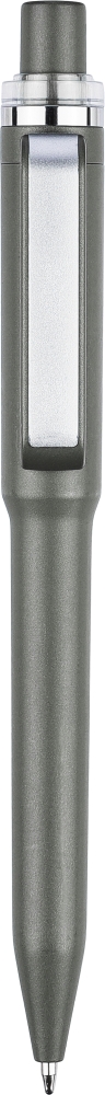 Propiska z recyklovaného ABS plastu ve tvaru cestovního hrnku s metalickou povrchovou úpravou. Má modrou náplň s, tlačítkový mechanismus, plastový zarážecí mechanismus, klip a chromovaný plastový kroužek nahoře. Rozměry: 14 x 1,4 x 1,4 cm
