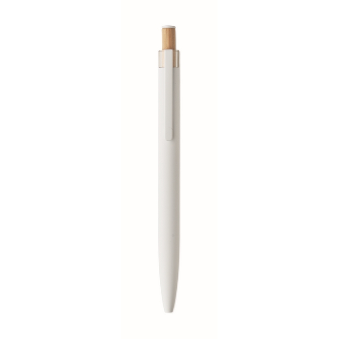 Propiska z recyklovaného hliníku s bambusovým tlačítkem a barevně sladěným kovovým klipem. Modrý inkoust.Rozměry: O1 x 14cm