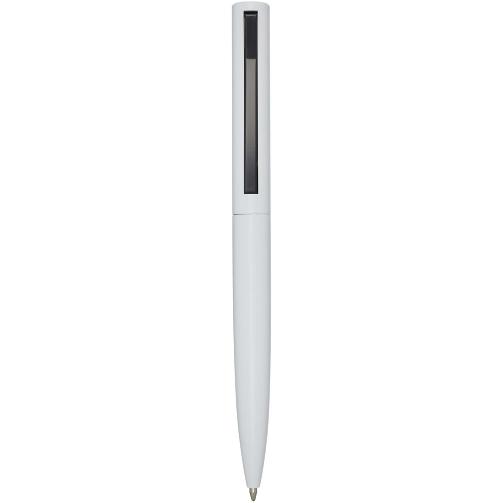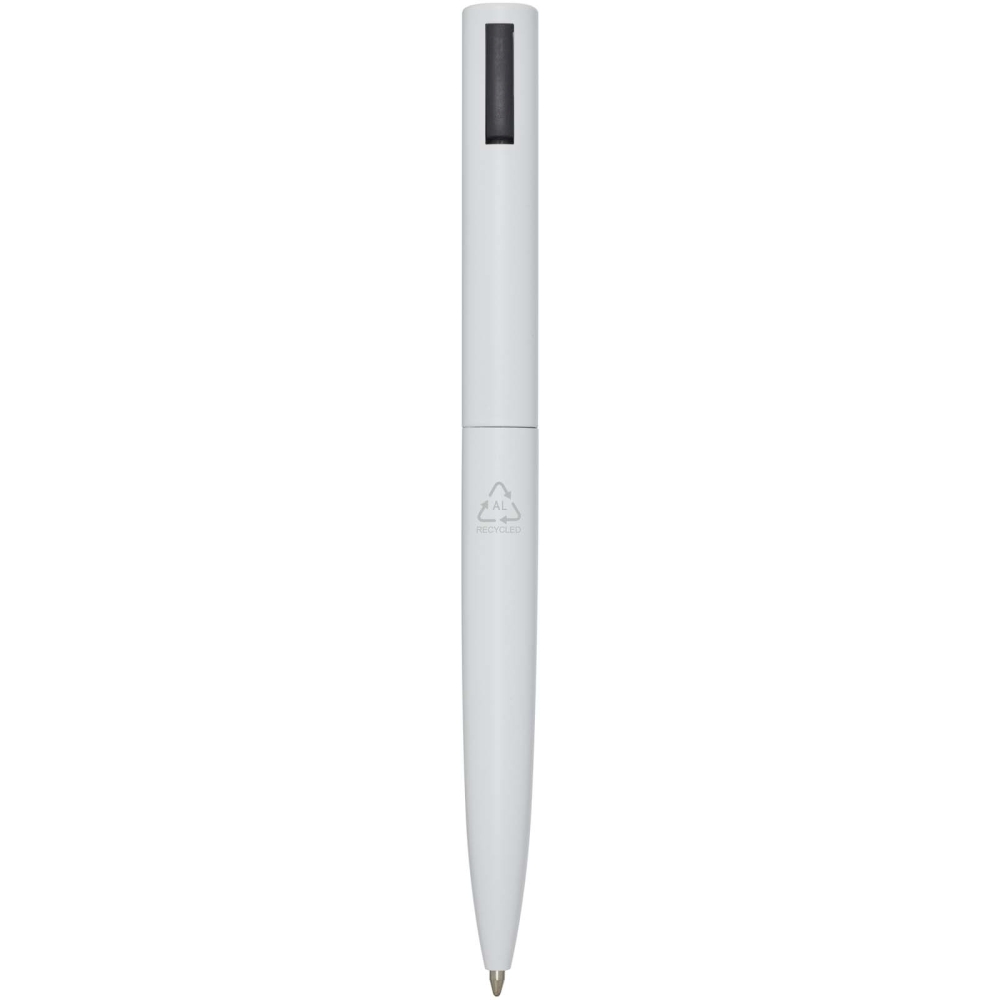 Propiska s horní částí těla vyrobenou z recyklovaného plastu a spodní částí z recyklovaného hliníku. Spona je vyrobena ze železa. Barva inkoustu: Černá. Délka psaní: 1000 metrů. Rozměr hrotu: 1,0 mm. Rozměry: 14,5 x O 1,5 cm