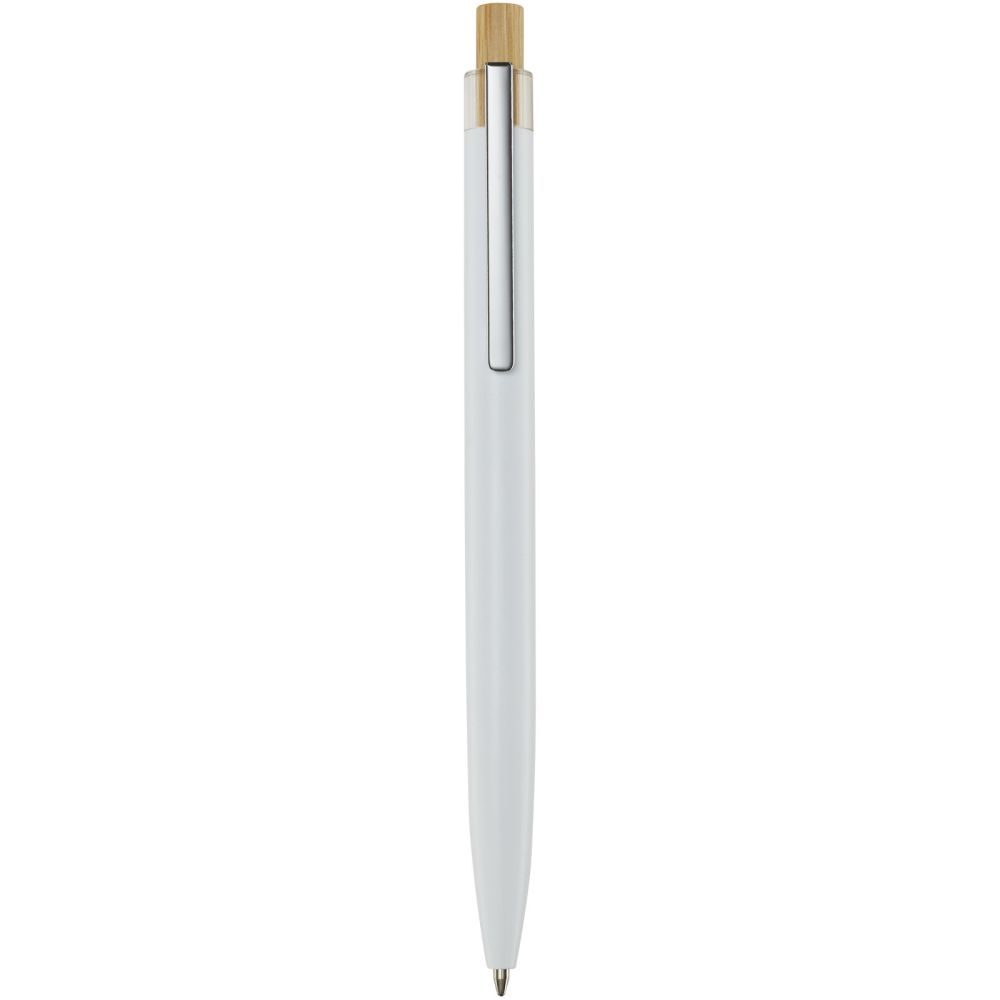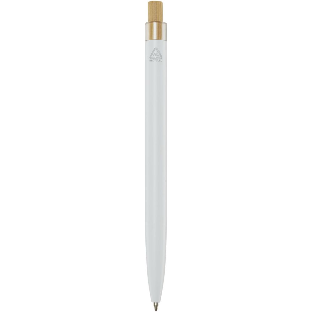 Kuličkové pero je vyrobeno z recyklovaného hliníku, což vyžaduje méně energie než výroba hliníku z nerostných surovin. Snižuje také množství odpadu na skládkách a pomáhá šetřit přírodní zdroje s cílem snížit emise skleníkových plynů. Tlačítko je vyrobeno z bambusu. Barva inkoustu: Černá. Délka psaní: 800 metrů. Rozměr hrotu: 1,00 mm. Rozměry: 14 x O 1,04 cm.