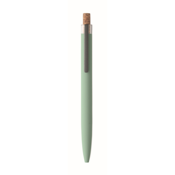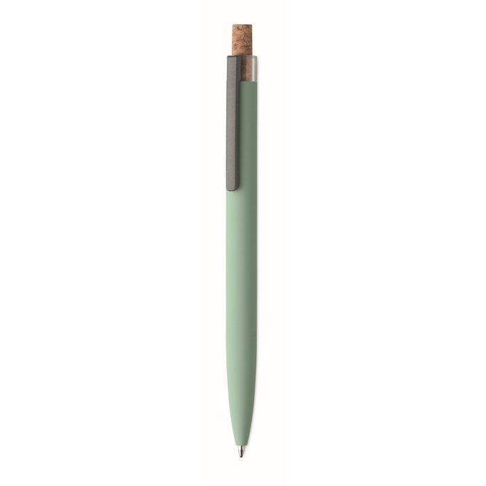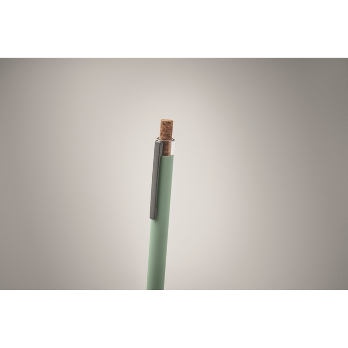Propiska z recyklovaného hliníku s korkovým tlačítkem a kovovým klipem. Modrý inkoust.Rozměry: O1 x 14cm