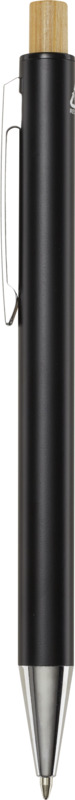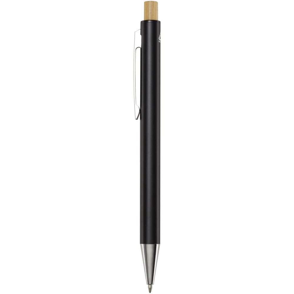 Kuličkové pero je vyrobeno z recyklovaného hliníku, což vyžaduje méně energie než výroba hliníku z nerostných surovin. Snižuje také množství odpadu na skládkách a pomáhá šetřit přírodní zdroje s cílem snížit emise skleníkových plynů. Tlačítko je vyrobeno z bambusu. Barva inkoustu: Modrá. Délka psaní: 800 metrů. Rozměr hrotu: 1,00 mm. Rozměry: 13,9 x O 1,02 cm.