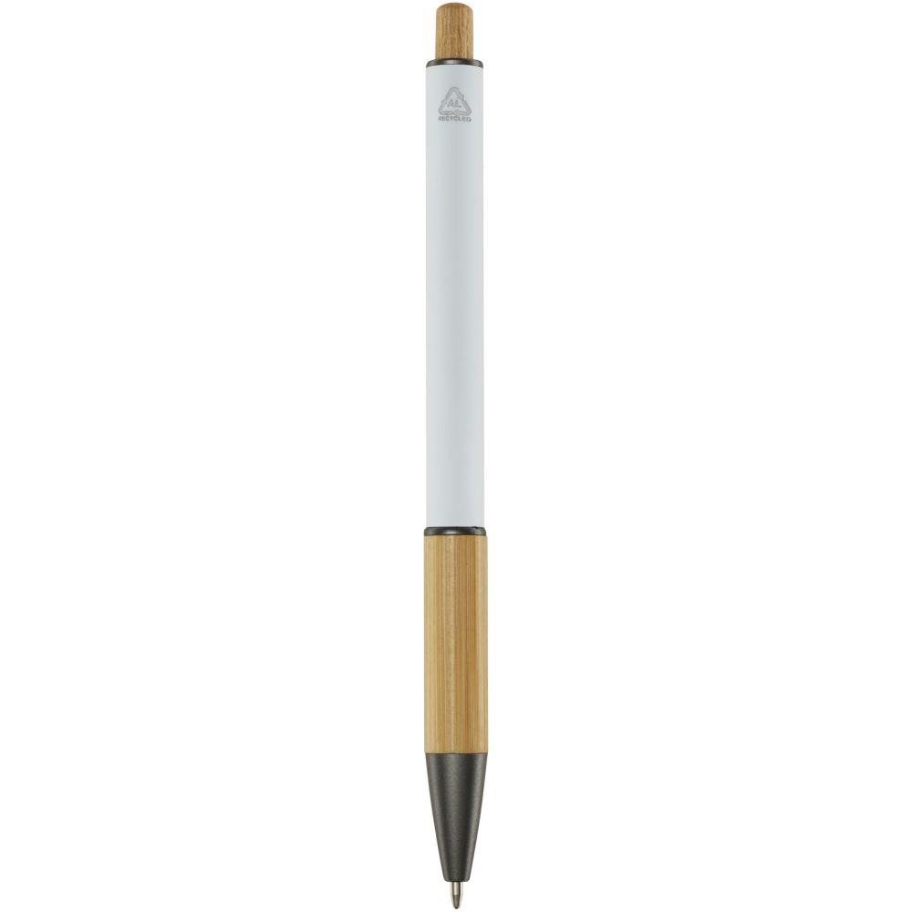 Propiska z recyklovaného hliníku s bambusovým úchopem, černá n., bílá