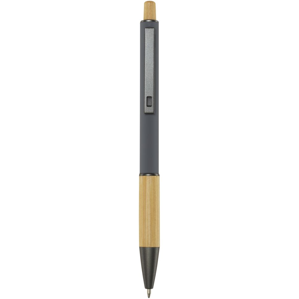 Kuličkové pero je vyrobeno z recyklovaného hliníku, což vyžaduje méně energie než výroba hliníku z nerostných surovin. Snižuje také množství odpadu na skládkách a pomáhá šetřit přírodní zdroje s cílem snížit emise skleníkových plynů. Tlačítko a spodní část těla je vyrobena z bambusu. Barva inkoustu: Modrá. Délka psaní: 800 metrů. Rozměr hrotu: 1,00 mm. Rozměry: 13,8 x O 1,02 cm.