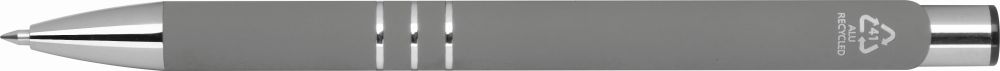 Kuličkové pero z recyklovaného hliníku. Pero má pogumovaný povrch a modrou gelovou náplň. Rozměry: o 1 x 14,3 cm