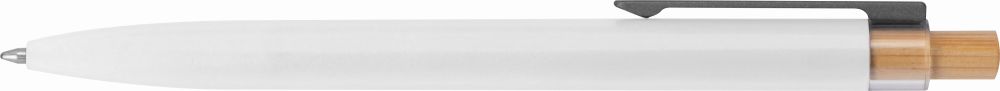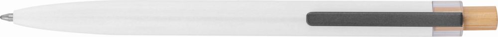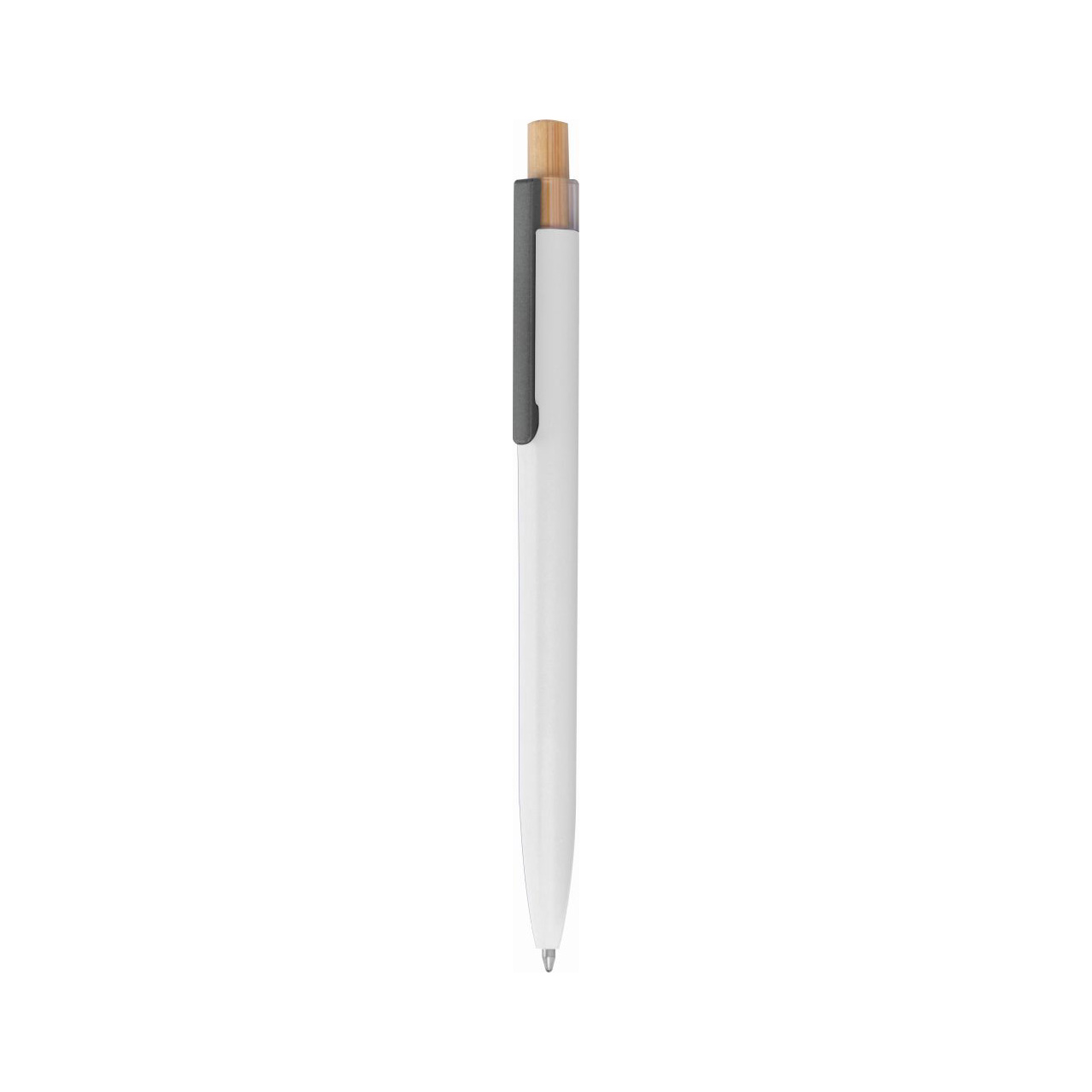 Kuličkové pero z recyklovaného hliníku s kovovým klipem a bambusovým tlačítkem. Pero má semi-gelovou náplň, díky které má pero sytou barvu a umožňuje lehké psaní. Rozměry: O 1 × 14,5 cm.