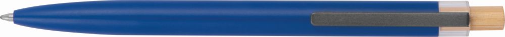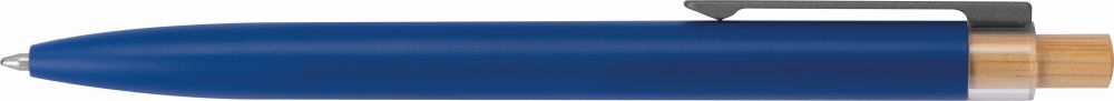 Kuličkové pero z recyklovaného hliníku s kovovým klipem a bambusovým tlačítkem. Pero má semi-gelovou náplň, díky které má pero sytou barvu a umožňuje lehké psaní. Rozměry: O 1 × 14,5 cm.