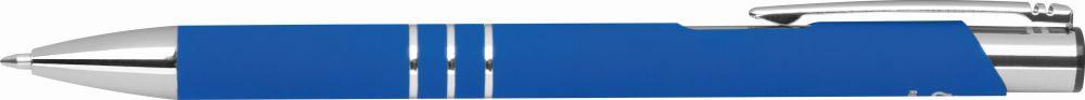 Kuličkové pero z recyklovaného hliníku. Pero má pogumovaný povrch a modrou gelovou náplň. Rozměry: o 1 x 14,3 cm