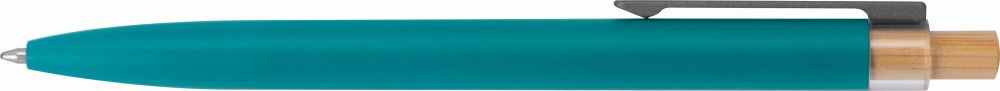 Kuličkové pero z recyklovaného hliníku s kovovým klipem a bambusovým tlačítkem. Pero má semi-gelovou náplň, díky které má pero sytou barvu a umožňuje lehké psaní. Rozměry: O 1 × 14,5 cm.