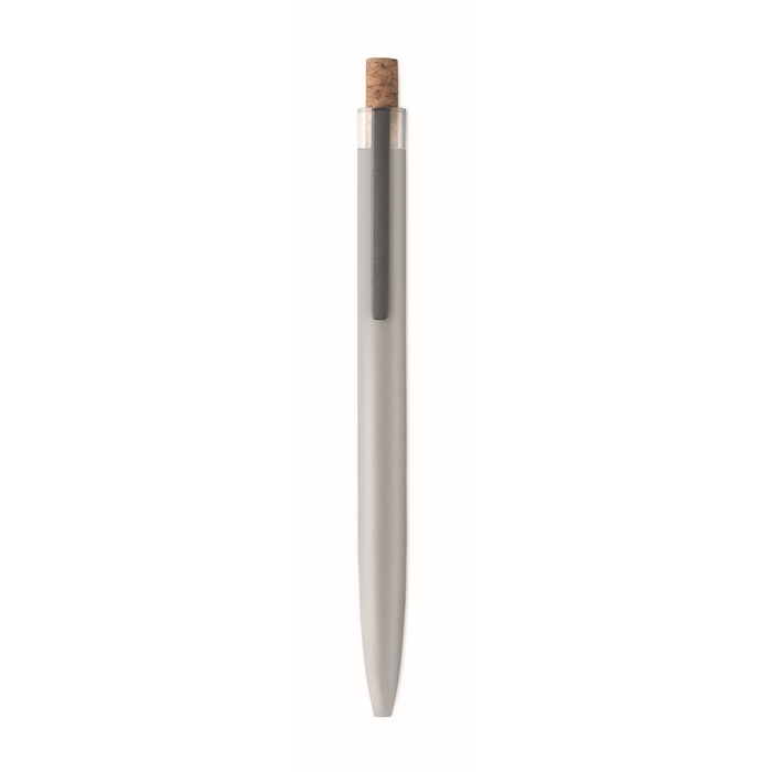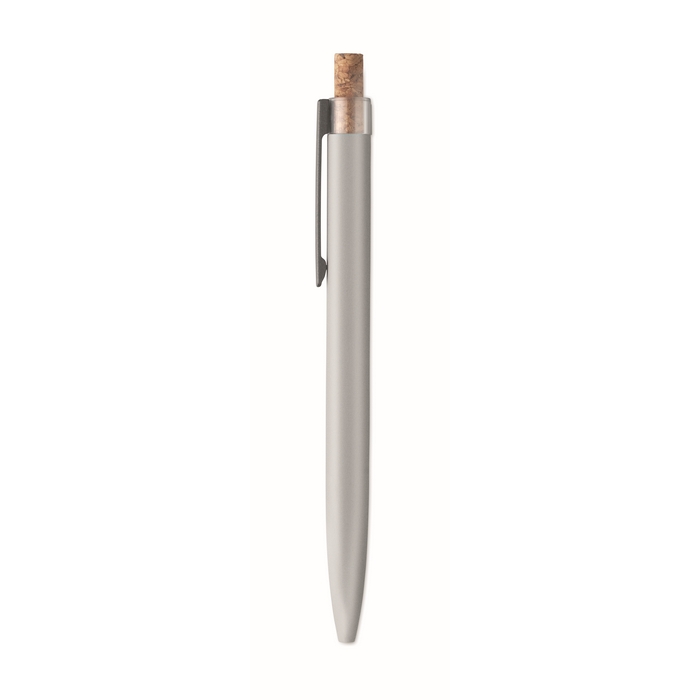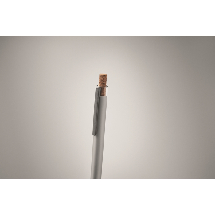 Propiska z recyklovaného hliníku s korkovým tlačítkem a kovovým klipem. Modrý inkoust.Rozměry: O1 x 14cm