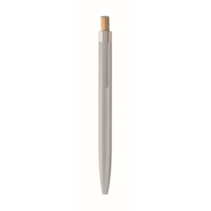 Propiska z recyklovaného hliníku s bambusovým tlačítkem a barevně sladěným kovovým klipem. Modrý inkoust.Rozměry: O1 x 14cm
