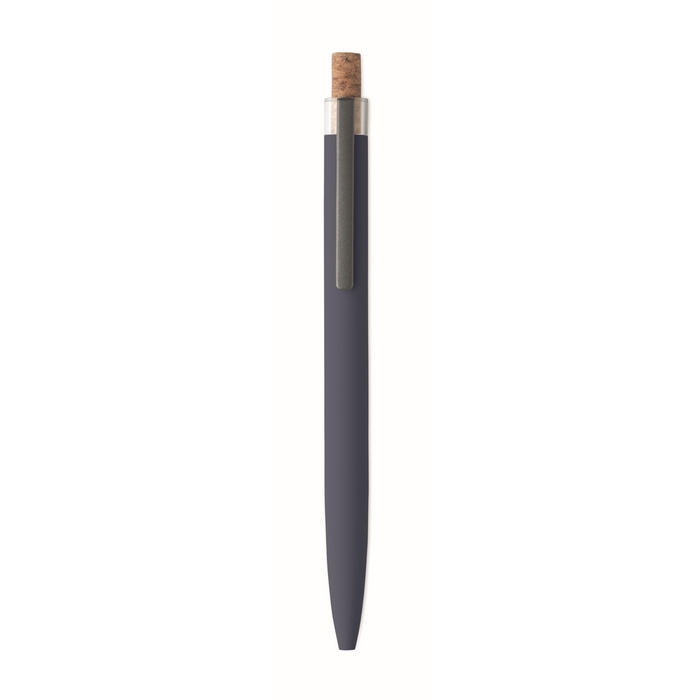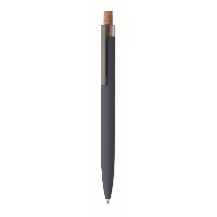 Propiska z recyklovaného hliníku s korkovým tlačítkem a kovovým klipem. Modrý inkoust.Rozměry: O1 x 14cm