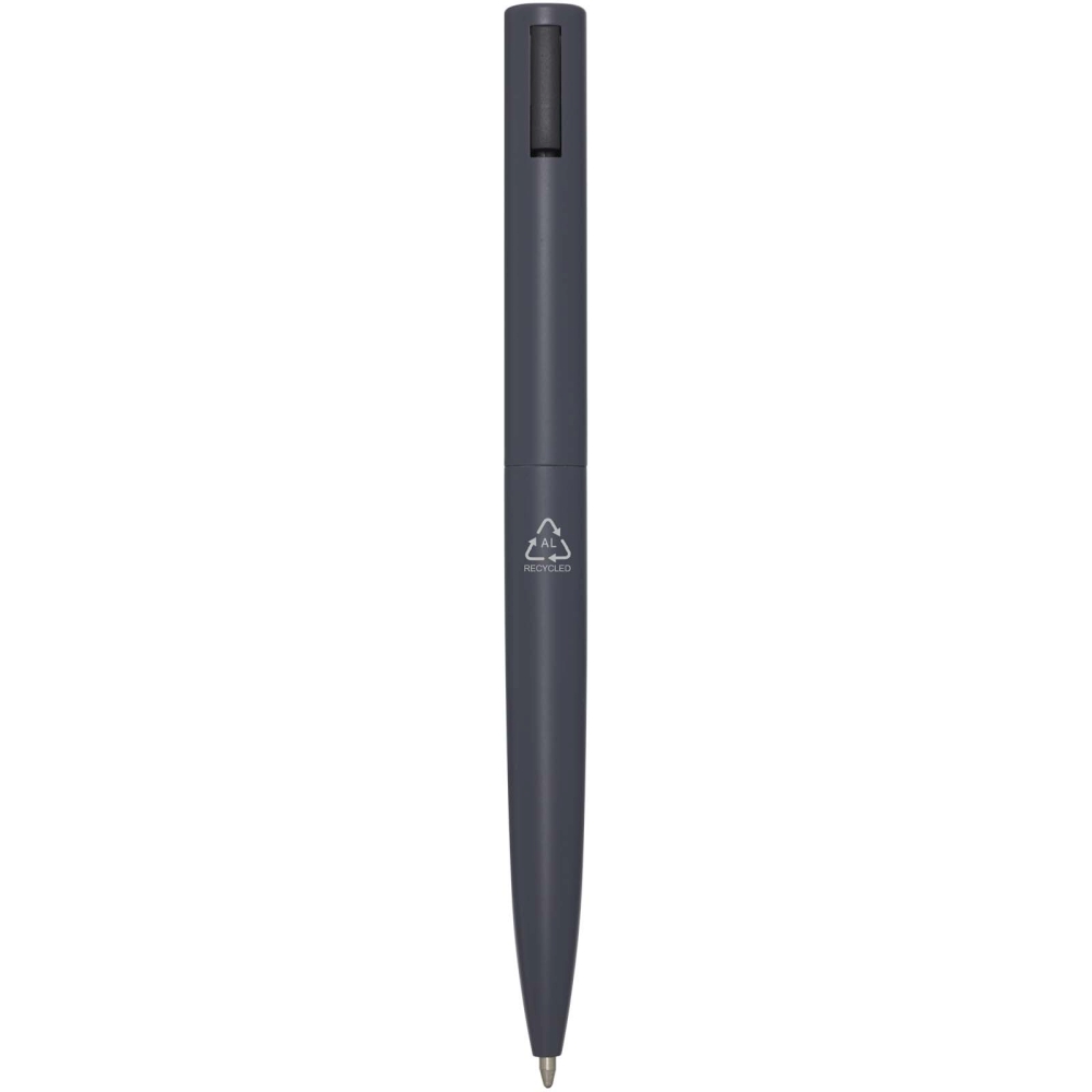 Propiska s horní částí těla vyrobenou z recyklovaného plastu a spodní částí z recyklovaného hliníku. Spona je vyrobena ze železa. Barva inkoustu: Černá. Délka psaní: 1000 metrů. Rozměr hrotu: 1,0 mm. Rozměry: 14,5 x O 1,5 cm