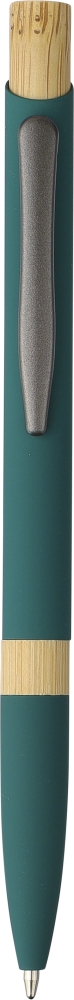 Propiska z recyklovaného hliníku s pogumovanou úpravou. Má tlačítkový mechanismus, hrot o velikosti 1,0 mm a modrý inkoust. Součástí je gravírované logo z recyklovaného hliníku. Rozměry: 14 x 1 x 1,5 cm
