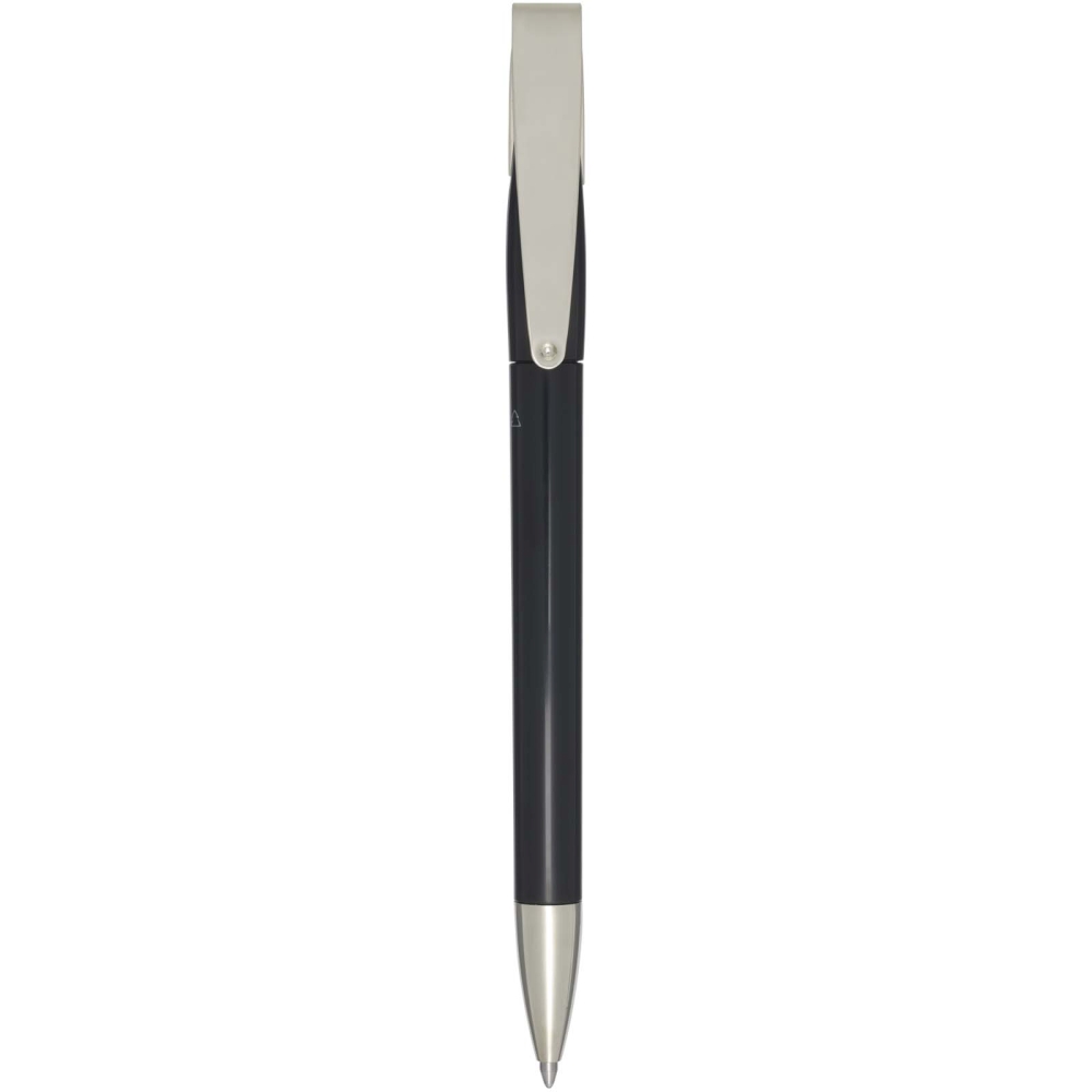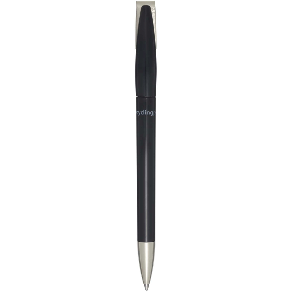 Propiska s tělem a sponou z recyklovaného plastu a hrotem z nerezové oceli. Barva inkoustu: Modrá. Délka psaní: 3000 metrů. Rozměr hrotu: 1,00 mm. Vyrobeno v Německu. Rozměry: 14,2 x O 1 cm