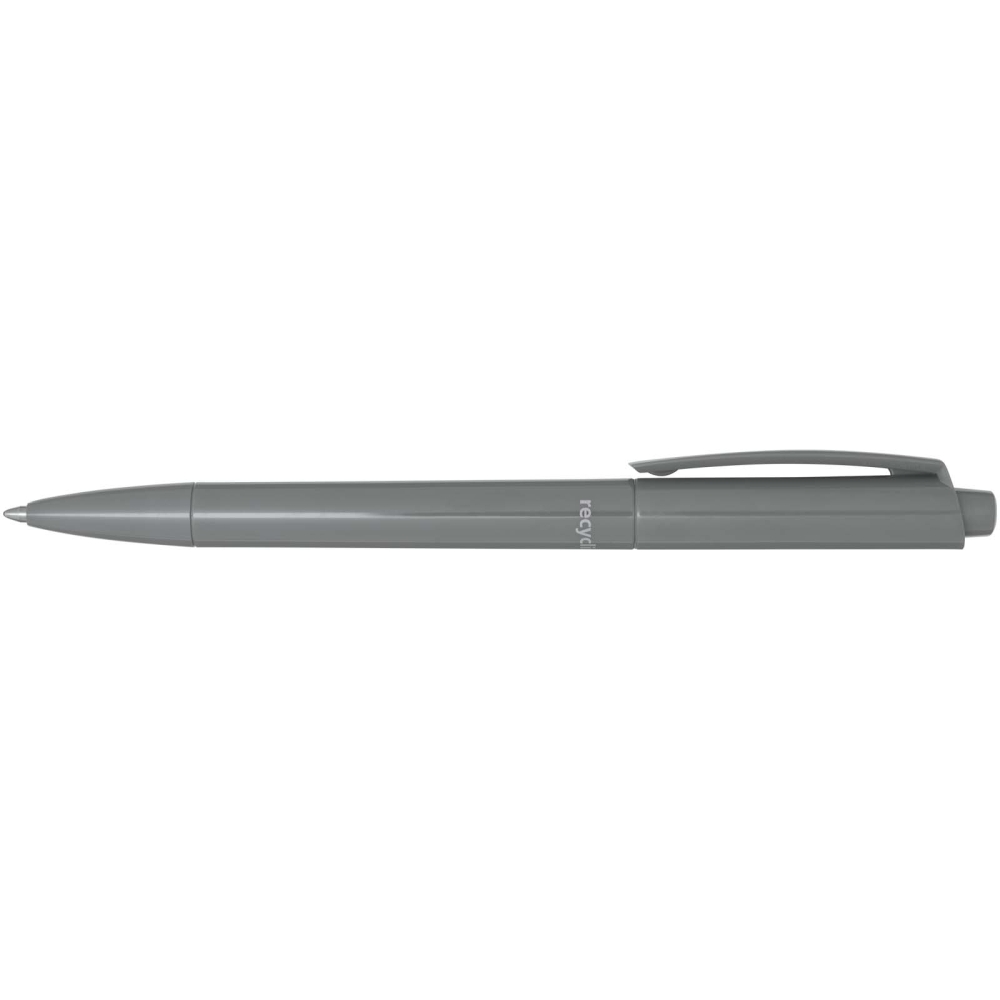 Propiska s tělem a sponou z recyklovaného plastu a hrotem z nerezové oceli. Barva inkoustu: Černá. Délka psaní: 3000 metrů. Rozměr hrotu: 1,00 mm. Vyrobeno v Německu. Rozměry: 14,8 x O 1,05 cm